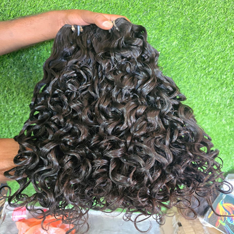 ผมต่ออินเดียแท้แบบรีมี่ เครื่องเย็บแบบดับเบิ้ลเวฟท์ ปลายผมเต็ม ลอนเด้ง สำหรับต่อผม
