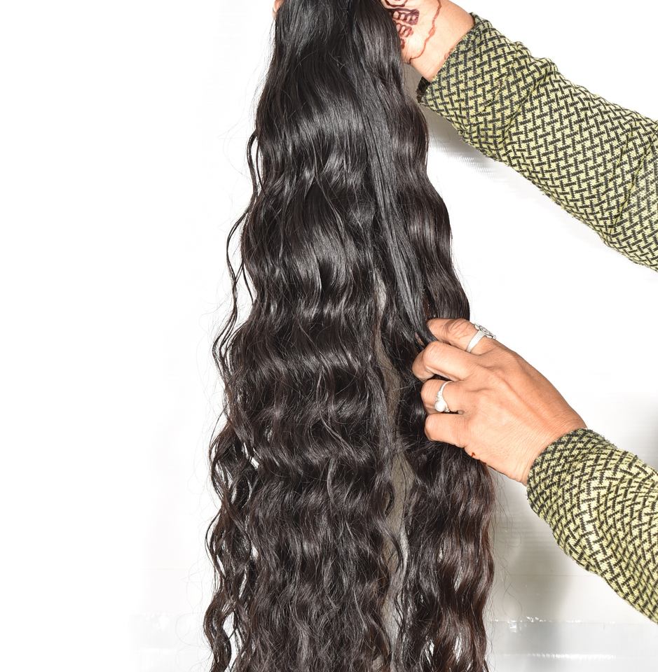 ผมต่ออินเดียแท้แบบเรมี่ แบบดิบ จัดเรียงเกล็ดผม แบบเป็นมัด สีธรรมชาติ ลอนลึกแบบหลวมๆ สำหรับต่อผม