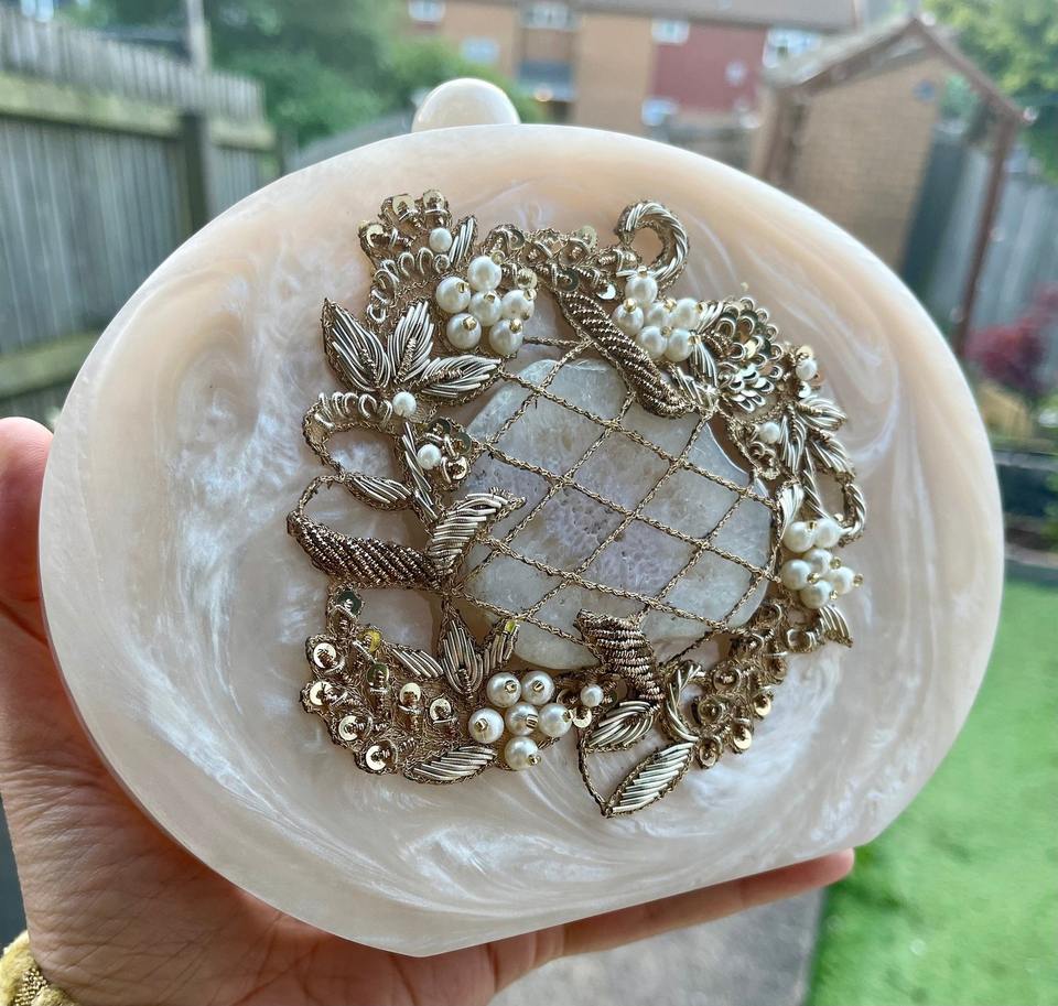 เครื่องประดับ:กระดุม, กระเป๋า, โซ่, ของประดับด้วยลูกปัด, ไข่มุก, ปักผ้า