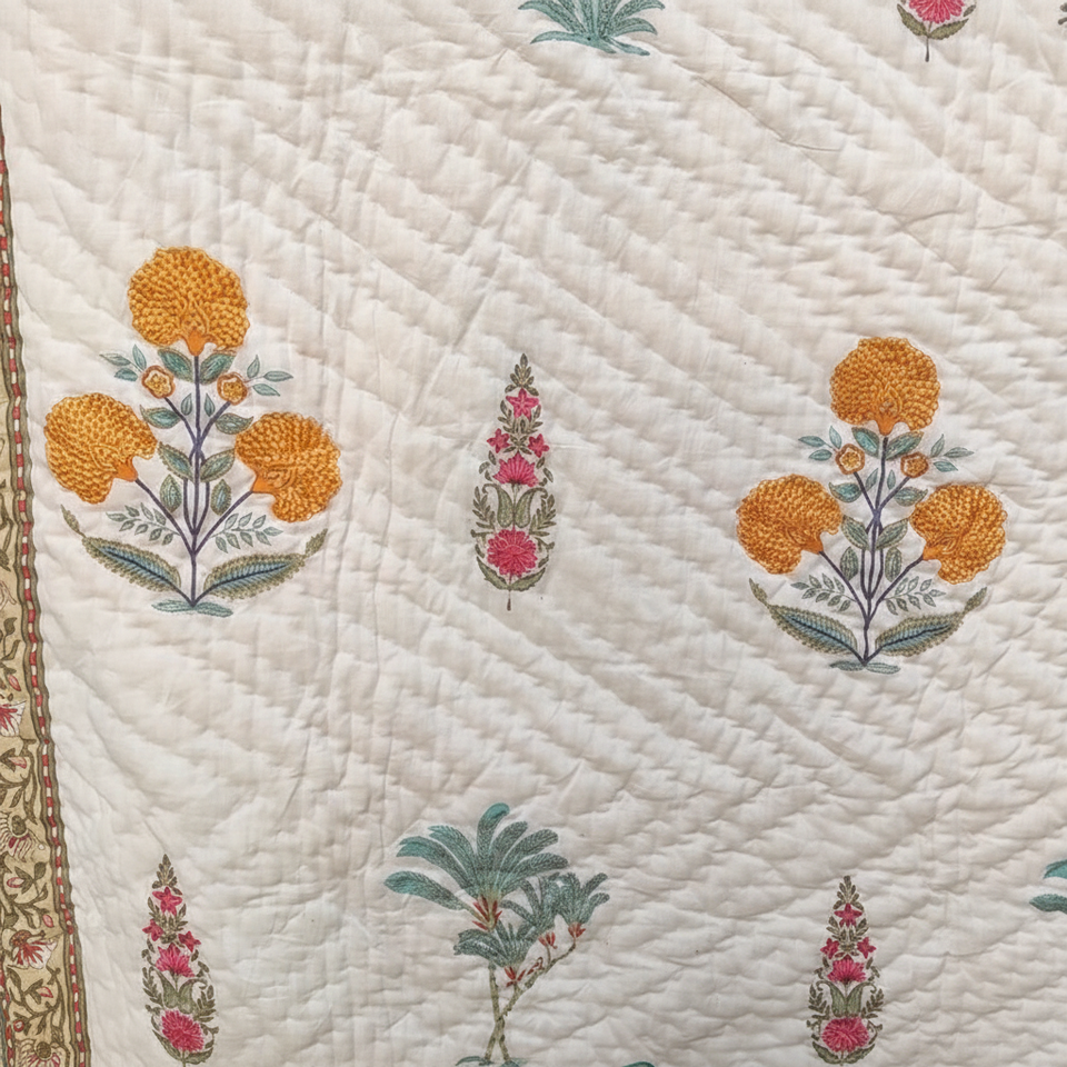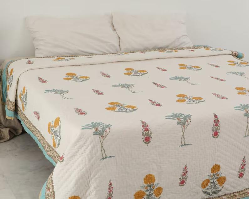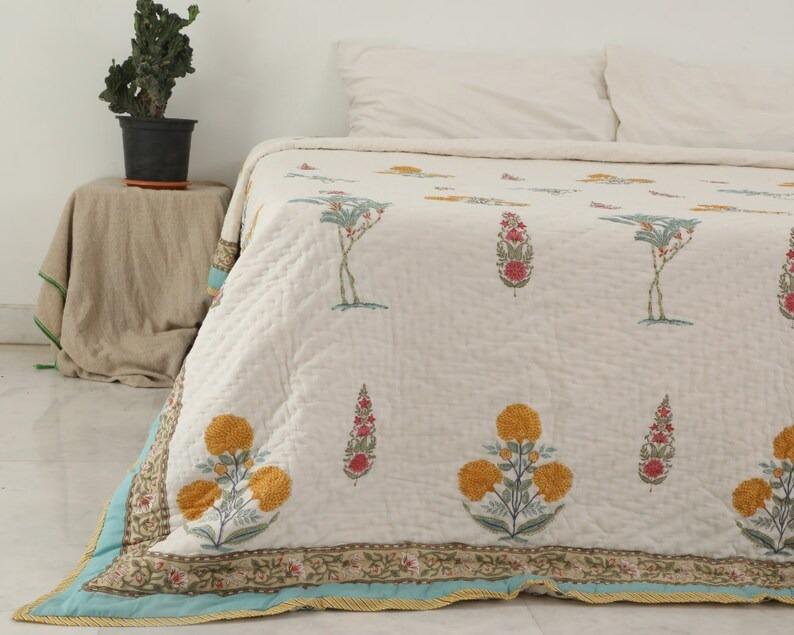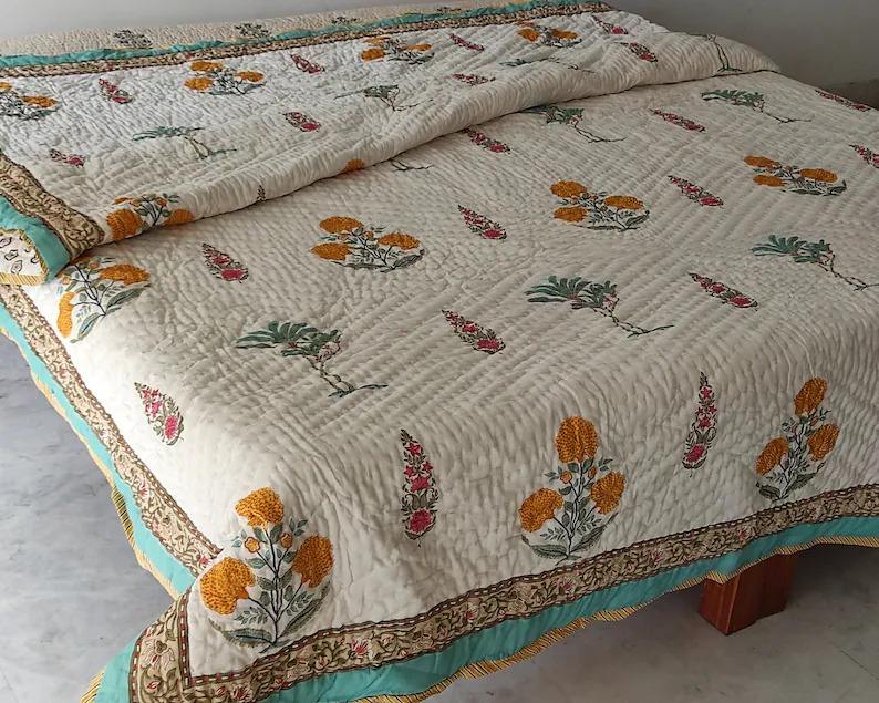 Jaipuri ผ้านวมแบบกลับด้านได้ทำด้วยมือผ้าปูที่นอนลายดอกไม้สไตล์อินเดียพื้นเมืองผ้าปูตกแต่งบ้าน