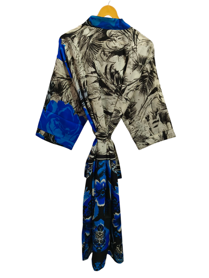 ชุดกิโมโนผ้าไหมส่าหรีลายดอกไม้แนววินเทจชุดคลุมส่าหรีชุดปาร์ตี้ชายหาดผ้านุ่มทำมือสไตล์อินเดีย
