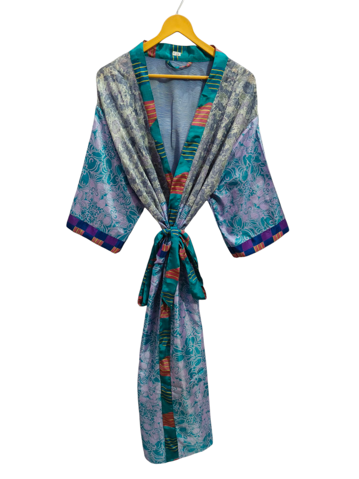 ชุดกิโมโนผ้าไหมส่าหรีลายดอกไม้แนววินเทจชุดคลุมส่าหรีชุดปาร์ตี้ชายหาดผ้านุ่มทำมือสไตล์อินเดีย