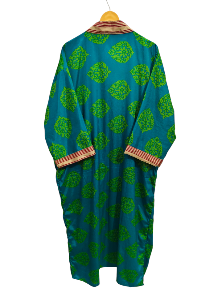 ชุดกิโมโนผ้าไหมส่าหรีลายดอกไม้แนววินเทจชุดคลุมส่าหรีชุดปาร์ตี้ชายหาดผ้านุ่มทำมือสไตล์อินเดีย