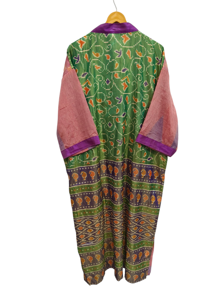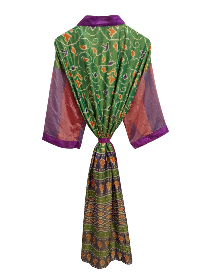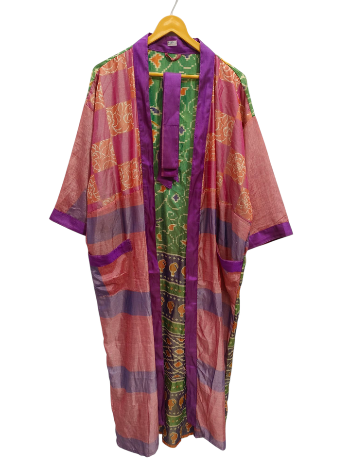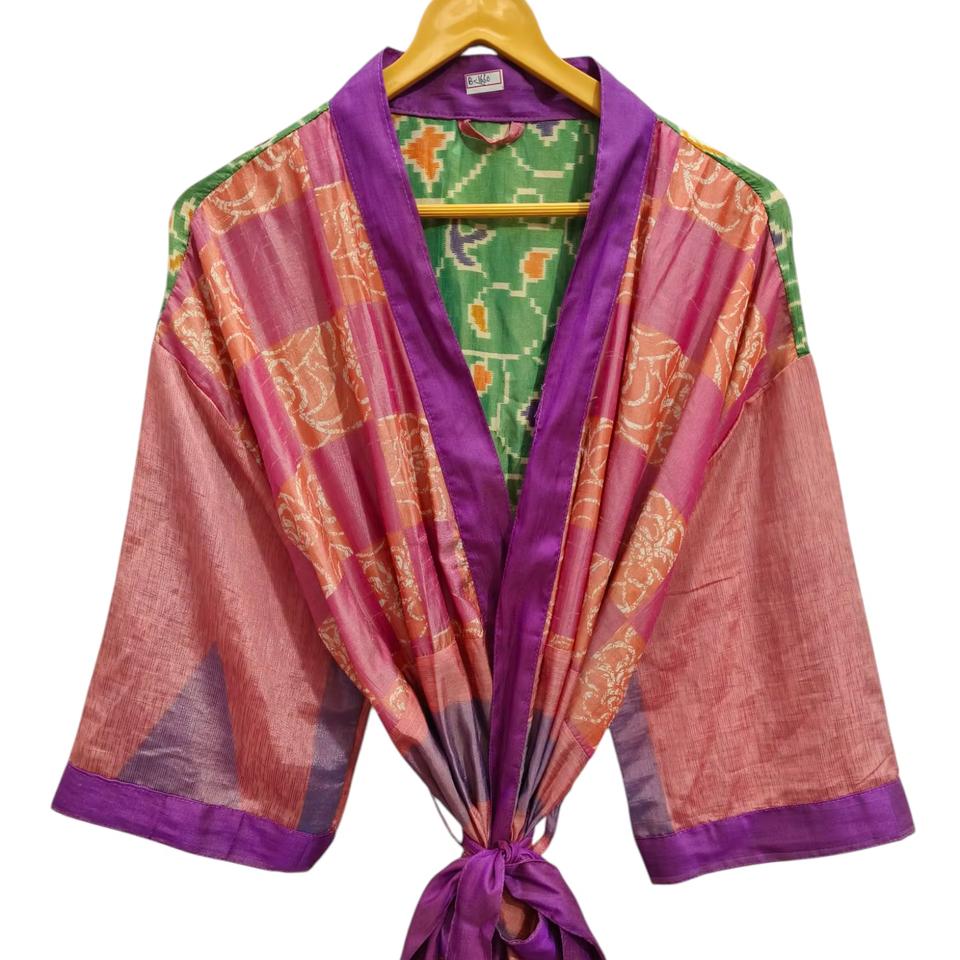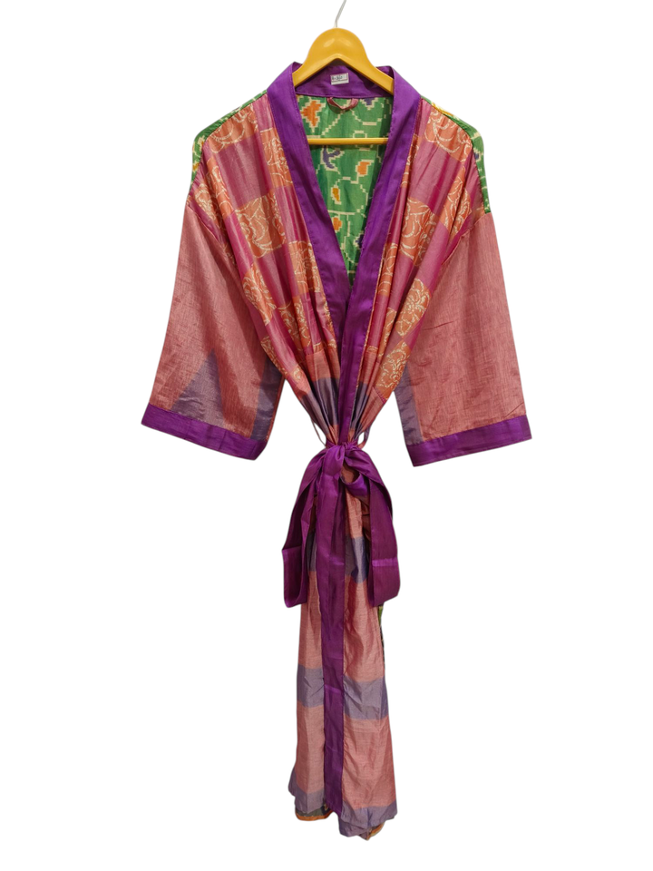 ชุดกิโมโนผ้าไหมส่าหรีลายดอกไม้แนววินเทจชุดคลุมส่าหรีชุดปาร์ตี้ชายหาดผ้านุ่มทำมือสไตล์อินเดีย