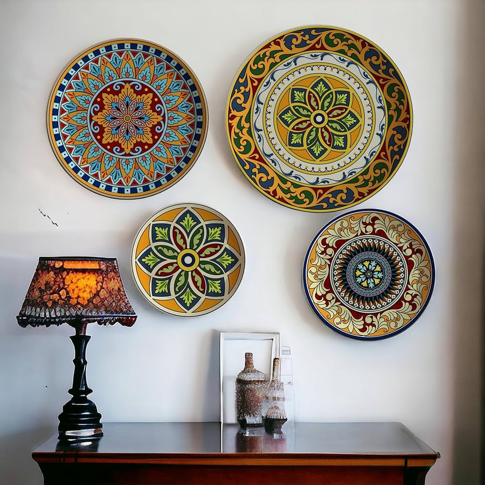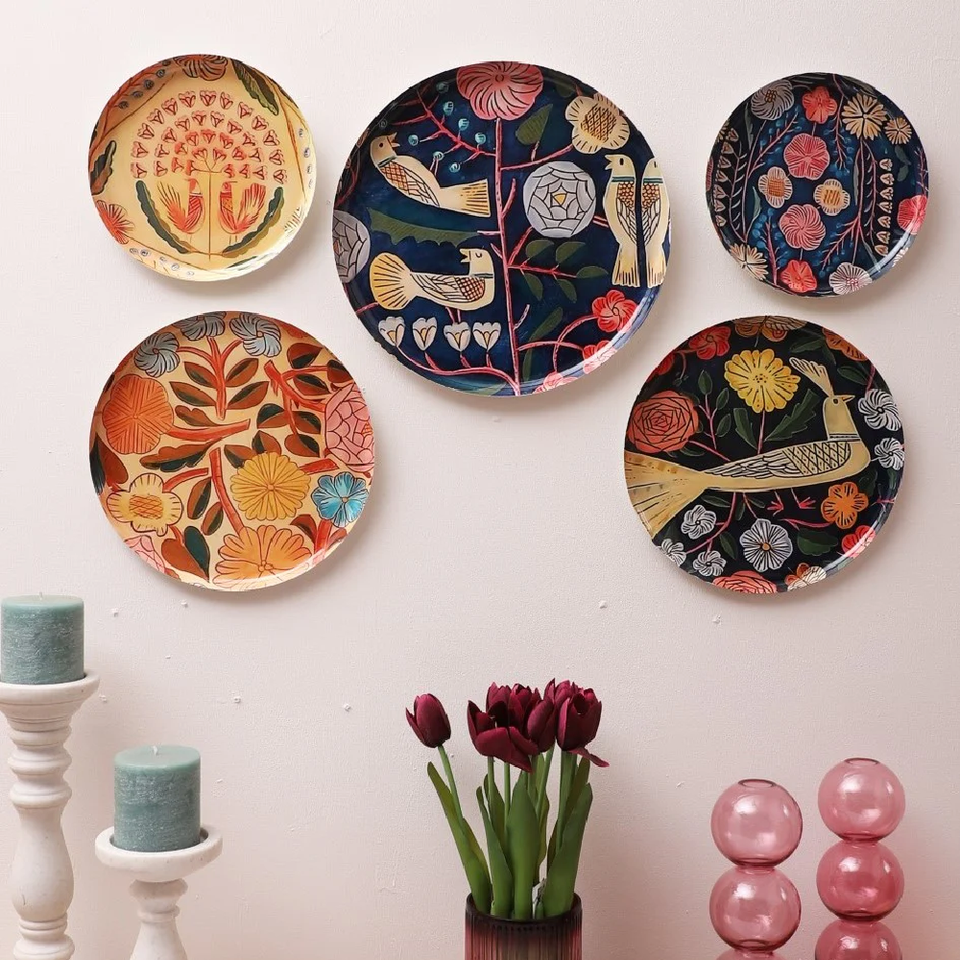 สติกเกอร์ติดผนังลายดอกไม้เคลือบสีดำ จานเหล็กกลมแบบอินเดีย สำหรับตกแต่งโต๊ะอาหาร อุปกรณ์คริสต์มาส ขายส่ง