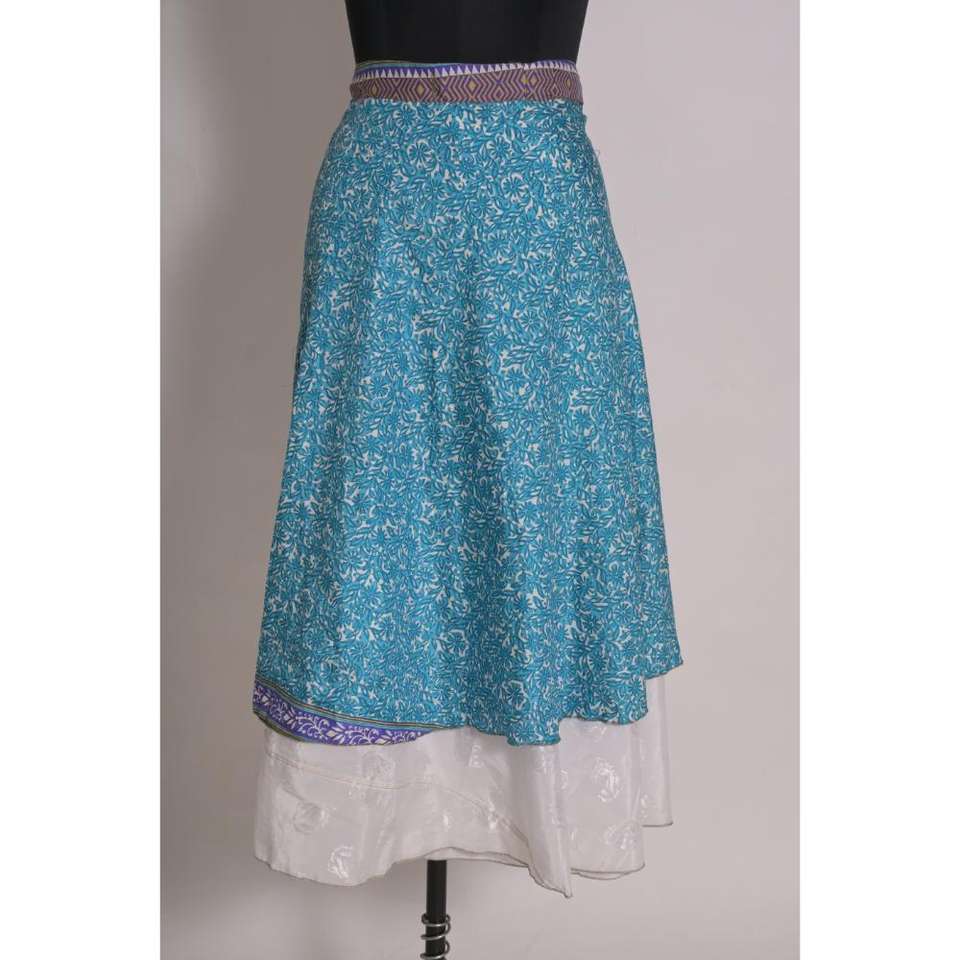กระโปรงผ้าลายส่าหรีแบบอินเดียผ้าไหมวินเทจใส่กลับด้านได้ & ทำด้วยมือสไตล์ยิปซีโบฮีเมียนสำหรับผู้หญิง