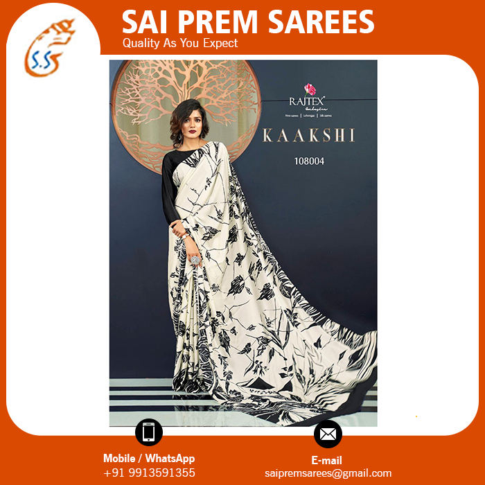 อินเดียซาติน Crape ผ้าไหม Sarees สวมใส่