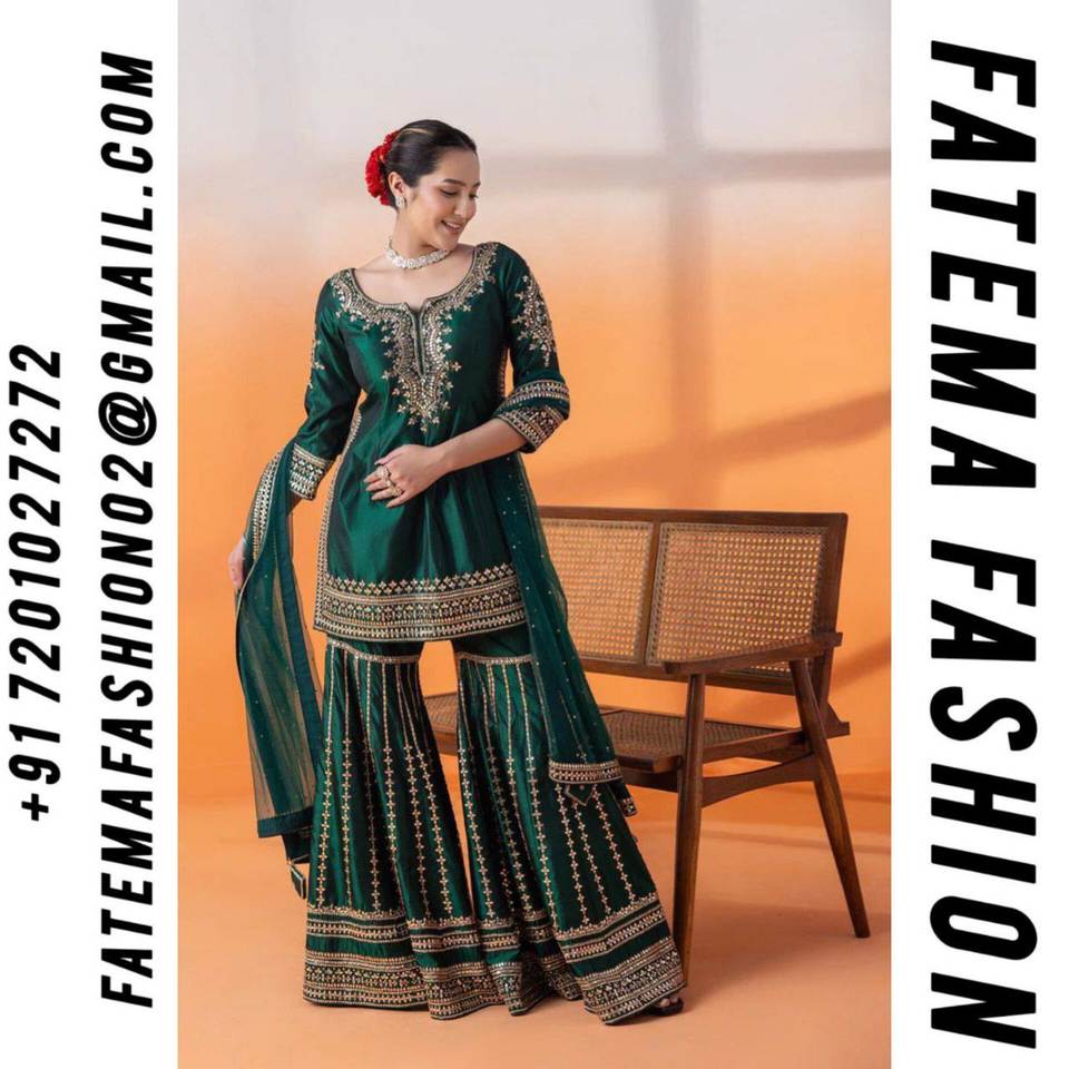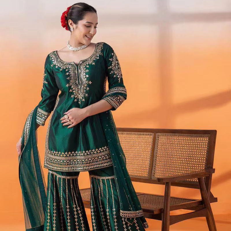 ชุดส่าหรีอินเดียปักเลื่อม 3 ชิ้น ชุดเดรสชาติพันธุ์ดีไซน์เนอร์ปากีสถาน ผ้าชินนอนอย่างดี ชุดสำเร็จรูป