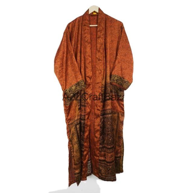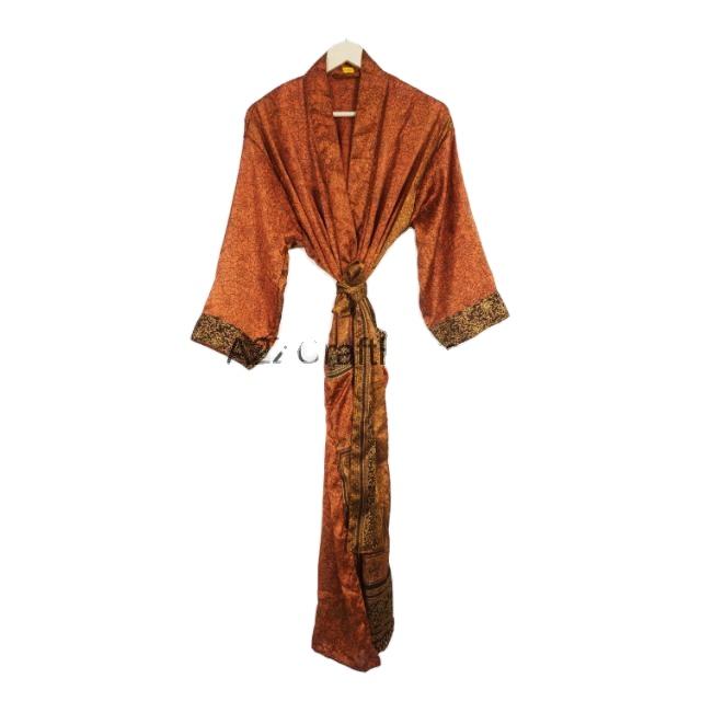 ชุดกิโมโนผ้าไหมสไตล์วินเทจทำด้วยมือสไตล์อินเดียชุดเดรสสไตล์โบฮีเมียนชุดเดรสเลานจ์สไตล์ญี่ปุ่นแบบเรียบสำหรับเป็นของขวัญหน้า