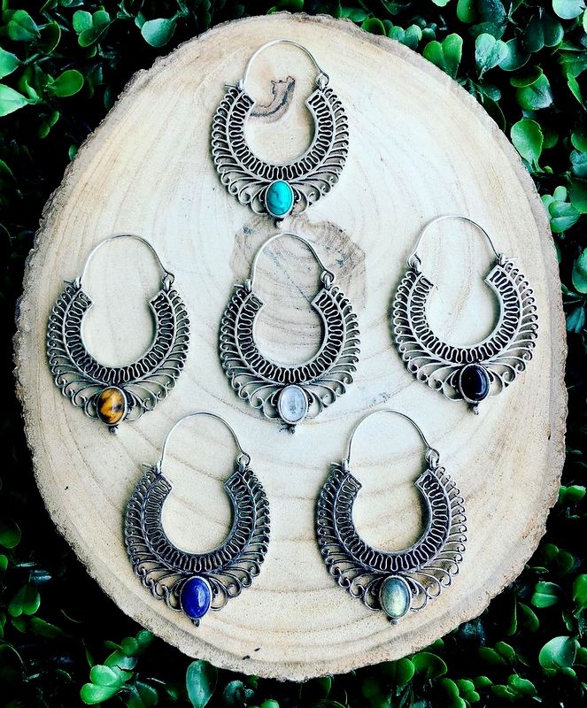 เงินอินเดียชุบเครื่องประดับกึ่งมีค่าพลอยห่วงต่างหูหินต่างหู