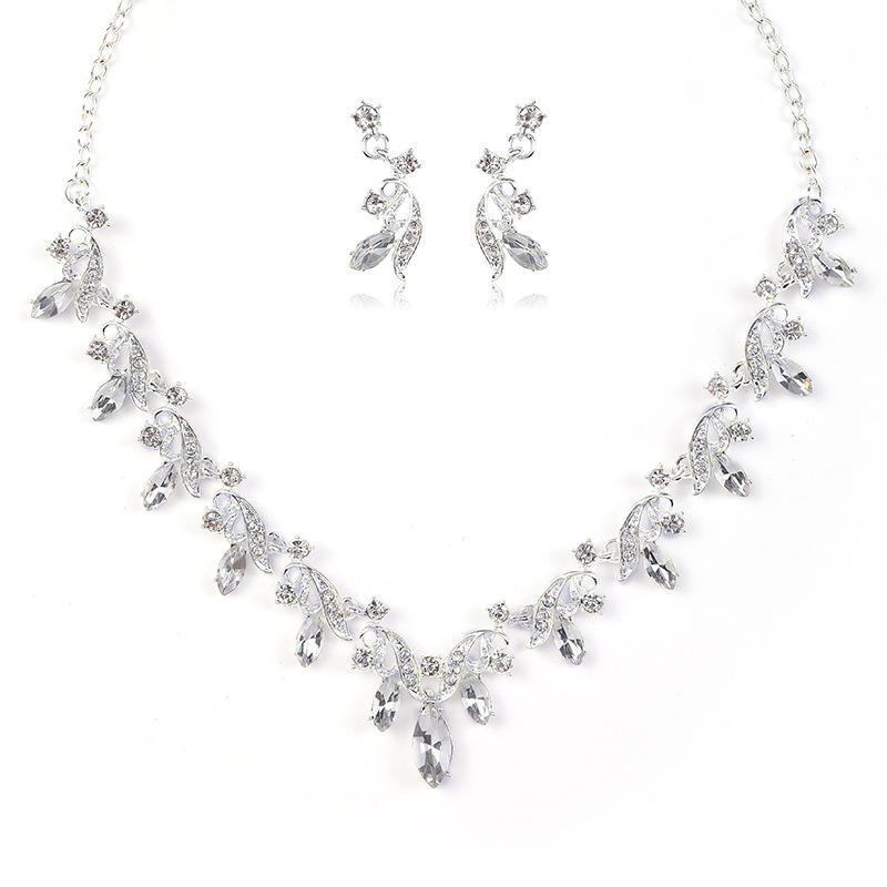 เครื่องประดับอินเดียชุบเงิน โลหะผสมมีค่า ไข่มุกน้ำจืด ของขวัญแต่งงานสำหรับเจ้าสาว สร้อยคอแฟชั่นประดับเพชรเทียม ต่างหู