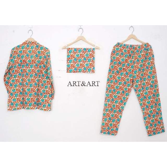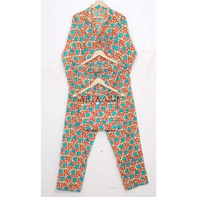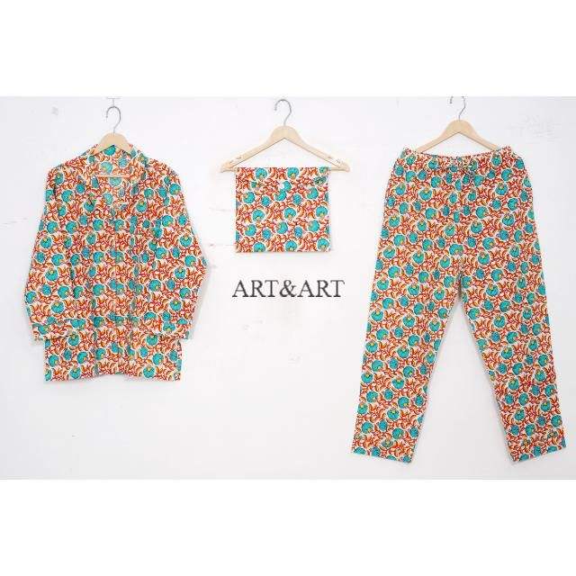 ชุดนอนผ้าฝ้ายสไตล์อินเดีย โบโฮและฮิปปี้ ชุดเสื้อ-กางเกงลายดอกพิมพ์ลายด้วยมือ ชุดนอนสำหรับผู้หญิง ขายส่ง