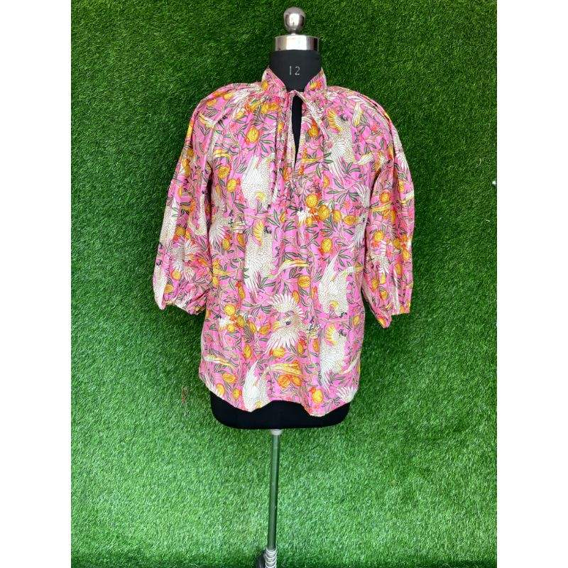 เสื้อปาร์ตี้ผ้าฝ้ายพิมพ์ลายดอกไม้ผ้าฝ้ายเนื้อนุ่มสไตล์อินเดียสำหรับฤดูร้อน