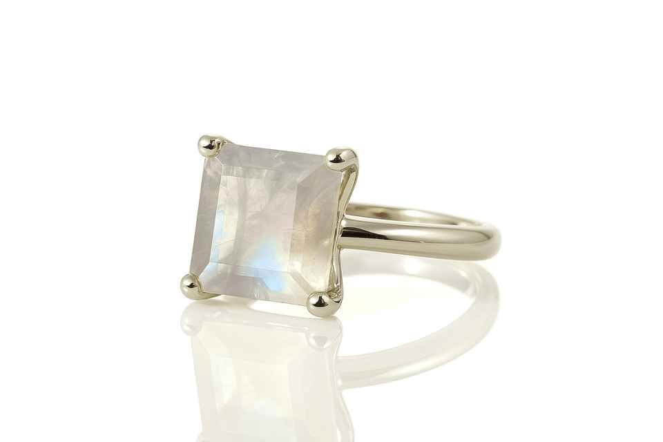 ชื่อผลิตภัณฑ์:แหวนพลอยมูนสโตนสีรุ้งสีเงินสเตอร์ลิง925