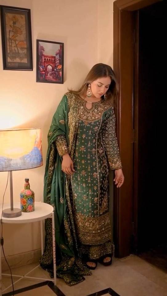 เสื้อและกางเกงปักลายผ้าจอร์จเจ็ตเทียมพร้อมดีไซน์เลื่อมและผ้าคลุม
