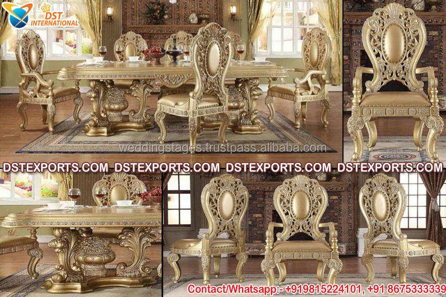 สไตล์อินเดียที่ทำด้วยมือชุดโต๊ะรับประทานอาหารโบราณแกะสลักเฟอร์นิเจอร์สำหรับห้องรับประทานอาหารมือแกะสลักโต๊ะห้องรับประทานอาหารและเก้าอี้ในการขาย