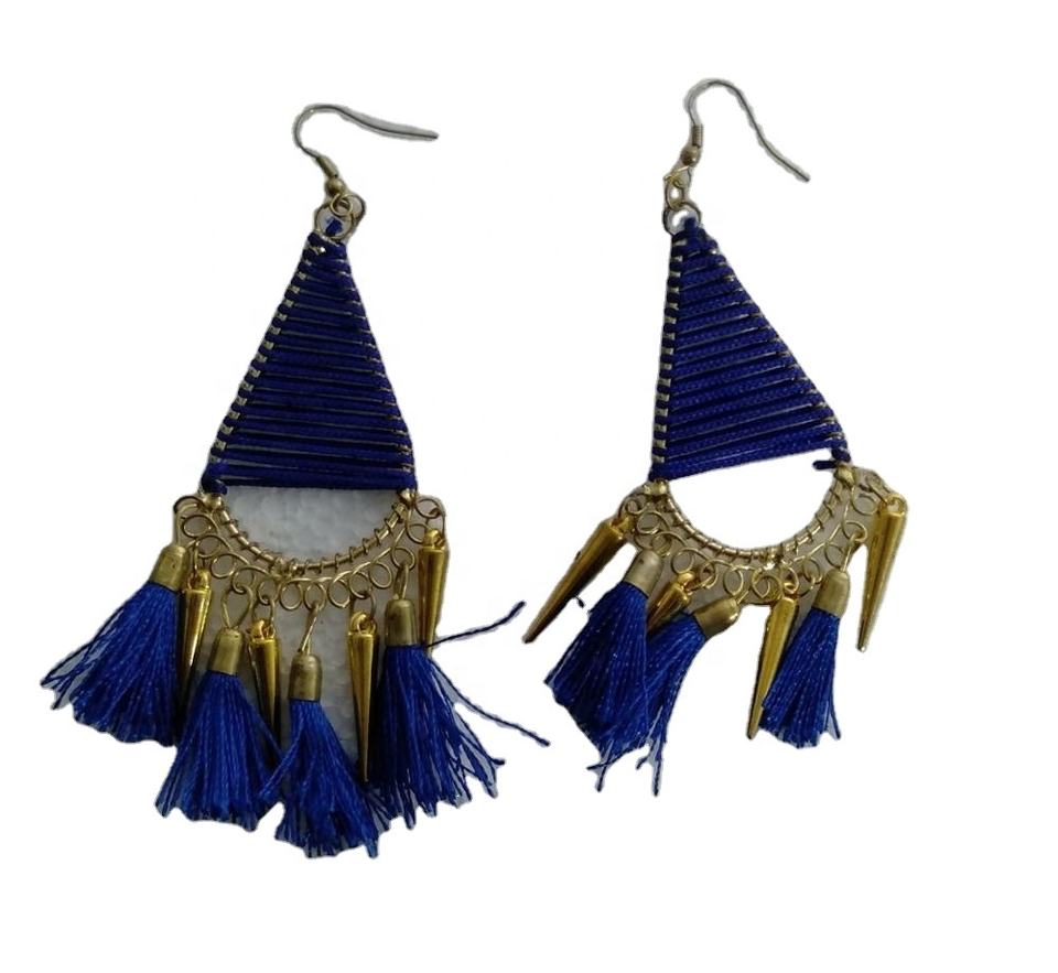 ต่างหูโลหะสไตล์อินเดียพร้อมทัสเซิลสีฟ้า2024อินเดียสำหรับผู้หญิงของขวัญรูปภาพปาร์ตี้สีขาวอินเทรนด์