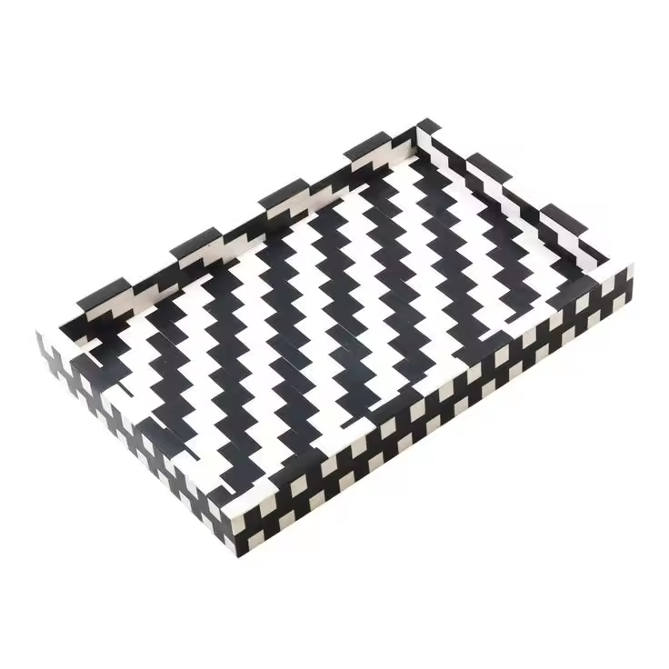 ถาดเสิร์ฟอาหารแบบฝังกระดูกทำด้วยมือสไตล์อินเดีย