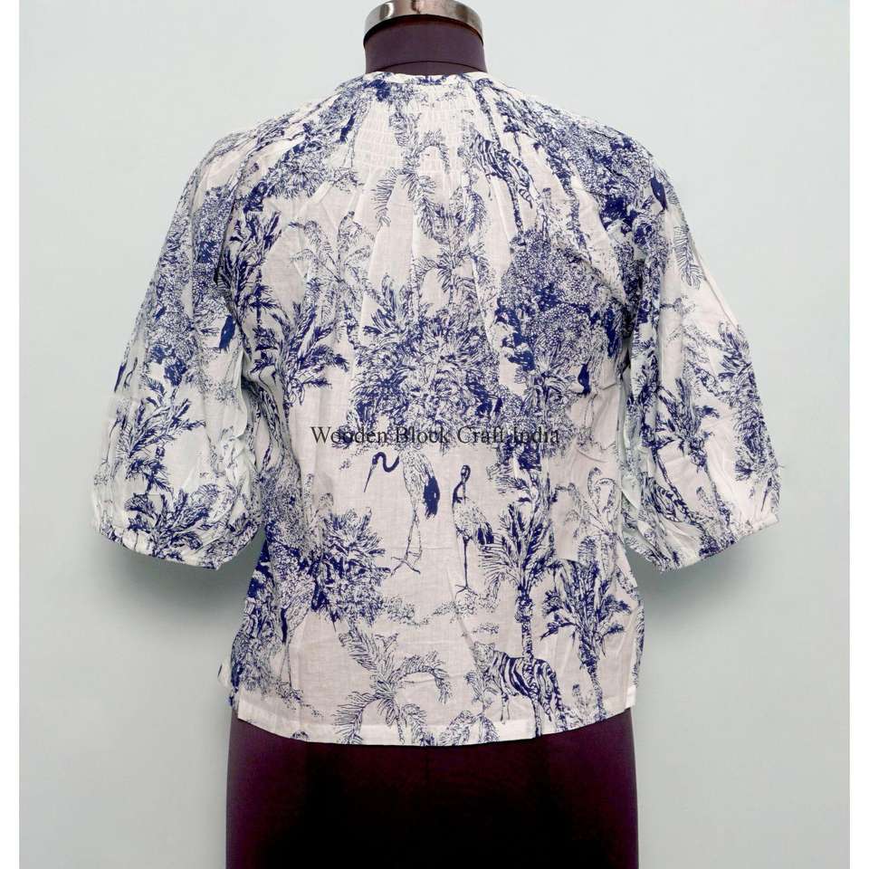 เสื้อครอปสไตล์อินเดียวินเทจสำหรับฤดูร้อน ผ้าฝ้าย 100% พิมพ์ลายดอกไม้ดิจิทัล คอกลม แขนพอง เป็นมิตรกับสิ่งแวดล้อม ระบายอากาศได้ดี สำหรับผู้หญิง