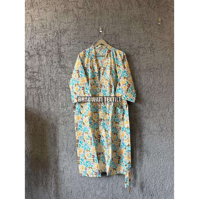 เสื้อคลุมกิโมโนผ้าฝ้ายแท้สำหรับผู้หญิงใส่ในฤดูร้อนสไตล์อินเดียชุดนอนมีโลโก้อย่างยั่งยืนพิมพ์ลายดอกไม้ดิจิตอล