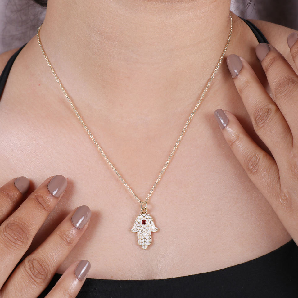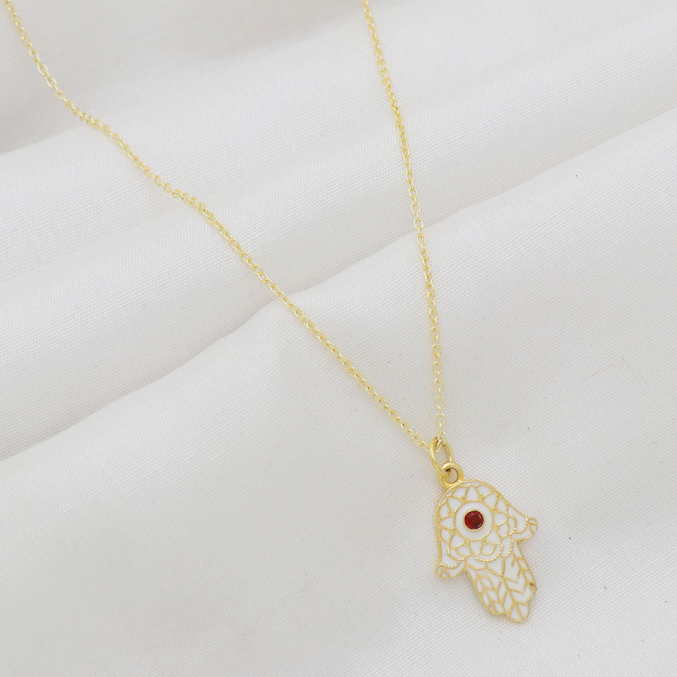 สร้อยคอ Hamsa เงิน925อินเดียเคลือบทองเคลือบเซรามิกพร้อมโกเมนสำหรับงานแต่งงานและของขวัญ
