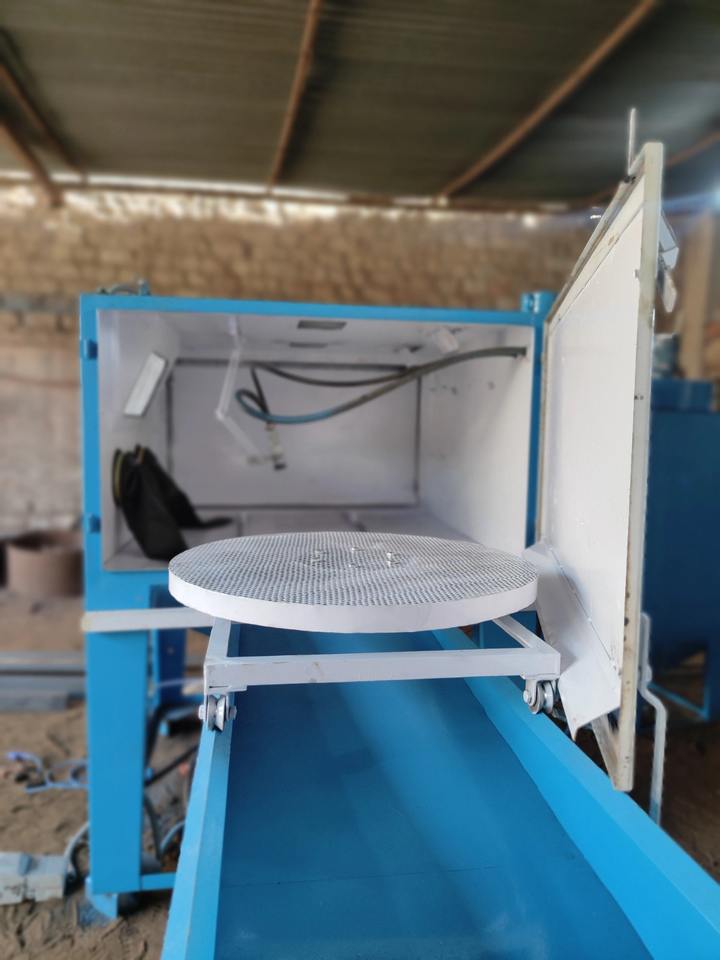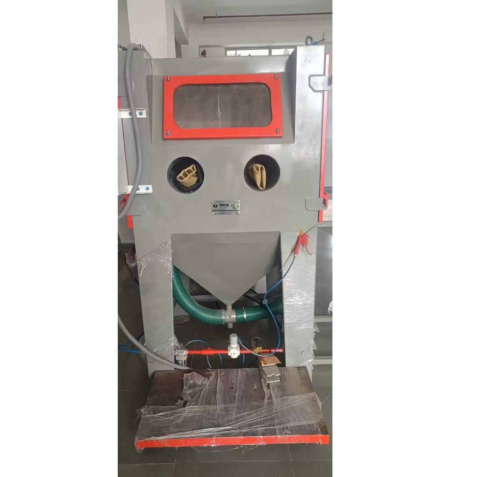 ตู้พ่นทรายแบบหมุนสำหรับขัดทำความสะอาดชิ้นส่วนโลหะสำหรับขัดและตกแต่งผู้ผลิตอินเดีย