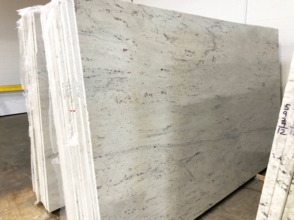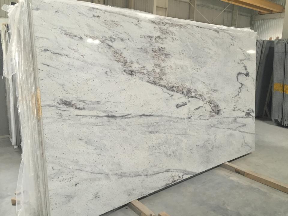 กระเบื้องแกรนิตสีขาวแม่น้ำขนาดตัดเป็นสัดส่วนกระเบื้องหินอ่อนเหมือนหินอ่อนตกแต่งแบบกำหนดเองสำหรับเคาน์เตอร์ห้องครัวห้องน้ำผู้จำหน่ายอินเดีย