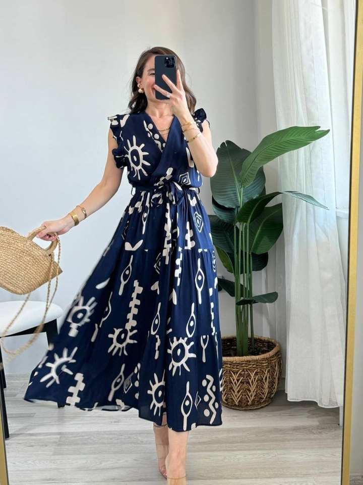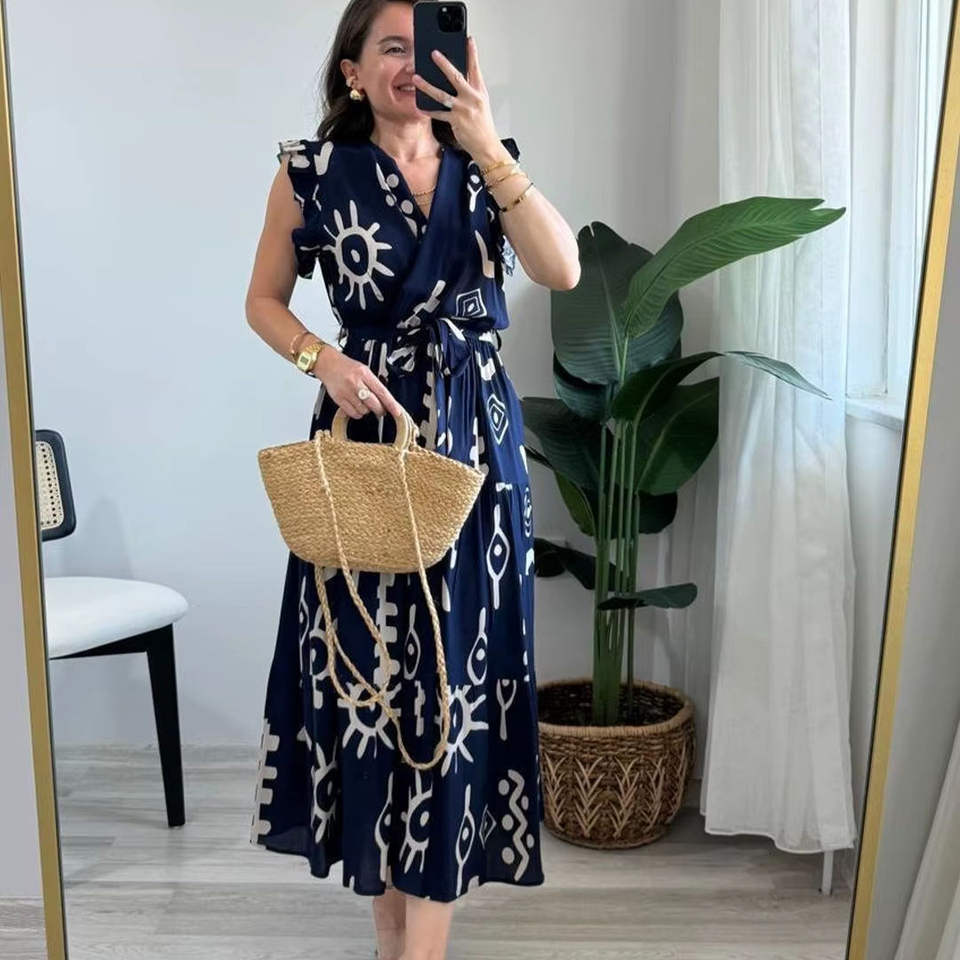 เดรสมิดิของผู้หญิงผ้านิ่มระบายอากาศได้ดีดีไซน์หรูหราคอวีแขนกุดสำหรับใส่ลำลองและใส่ชายหาดผู้จำหน่ายในอินเดีย