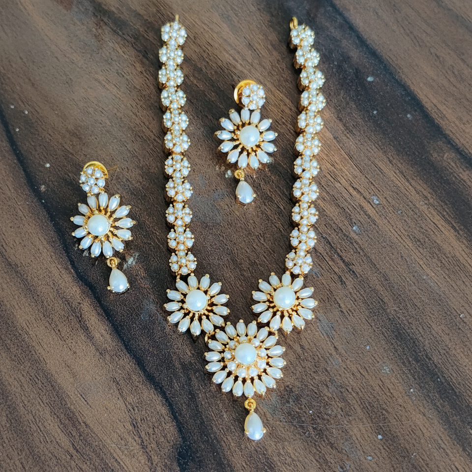 ชุดสร้อยคอพร้อมจี้ประดับมุกเทียมชุบทองแบบอินเดียสำหรับผู้หญิง เหมาะสำหรับงานแต่งงาน