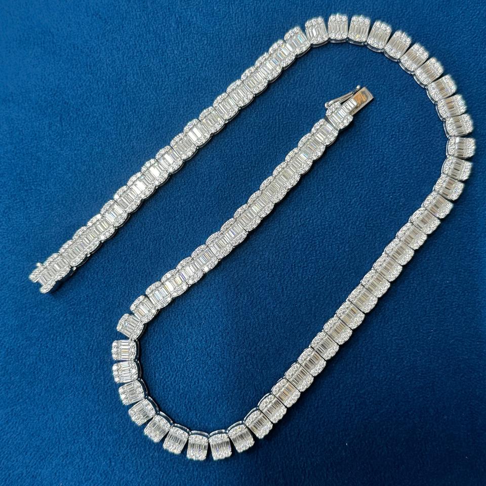 ผู้ผลิตเครื่องประดับระดับไฮเอนด์จากอินเดีย สร้อยเทนนิสเพชรโมอิสซาไนต์ทรงบาแกตต์ พร้อมเงินแท้ 925 จากซัพพลายเออร์อินเดีย