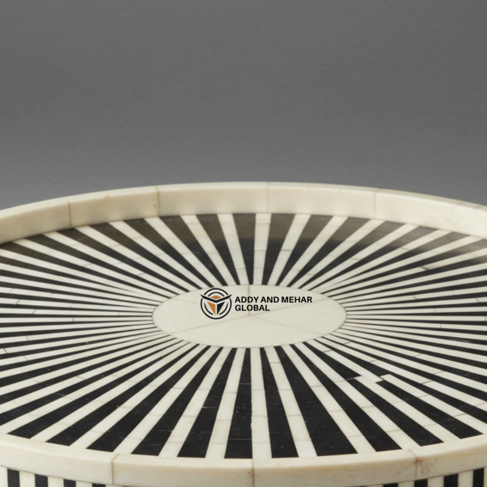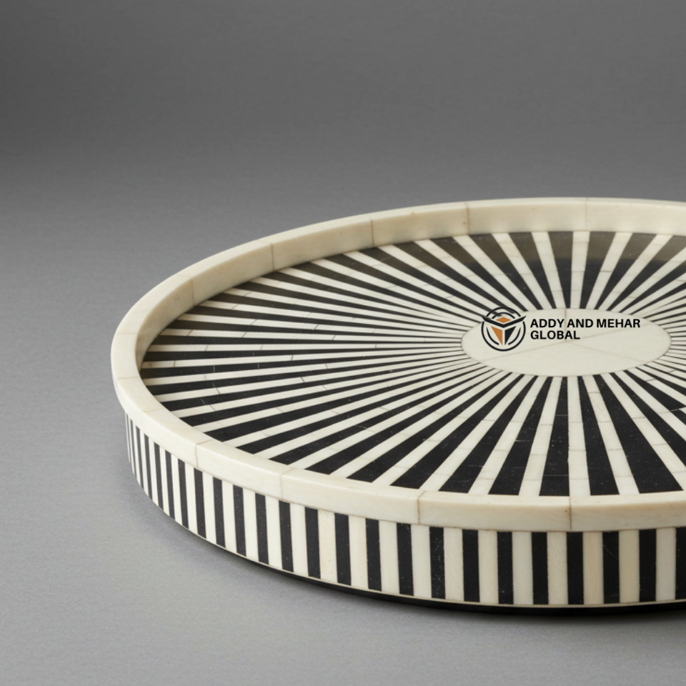 ถาดกลมฝังกระดูกสีดำ & สีเบจทำด้วยมือของตกแต่งจานเสิร์ฟ & ของตกแต่งบ้านผู้จำหน่ายในอินเดีย