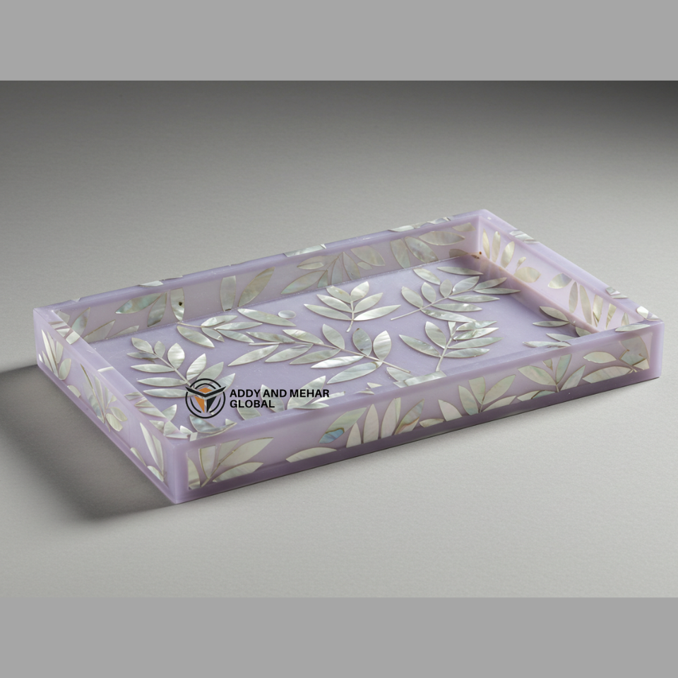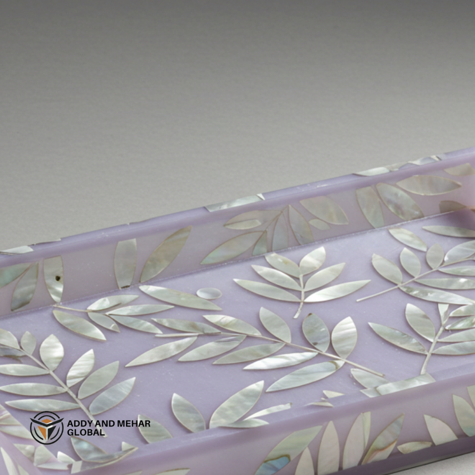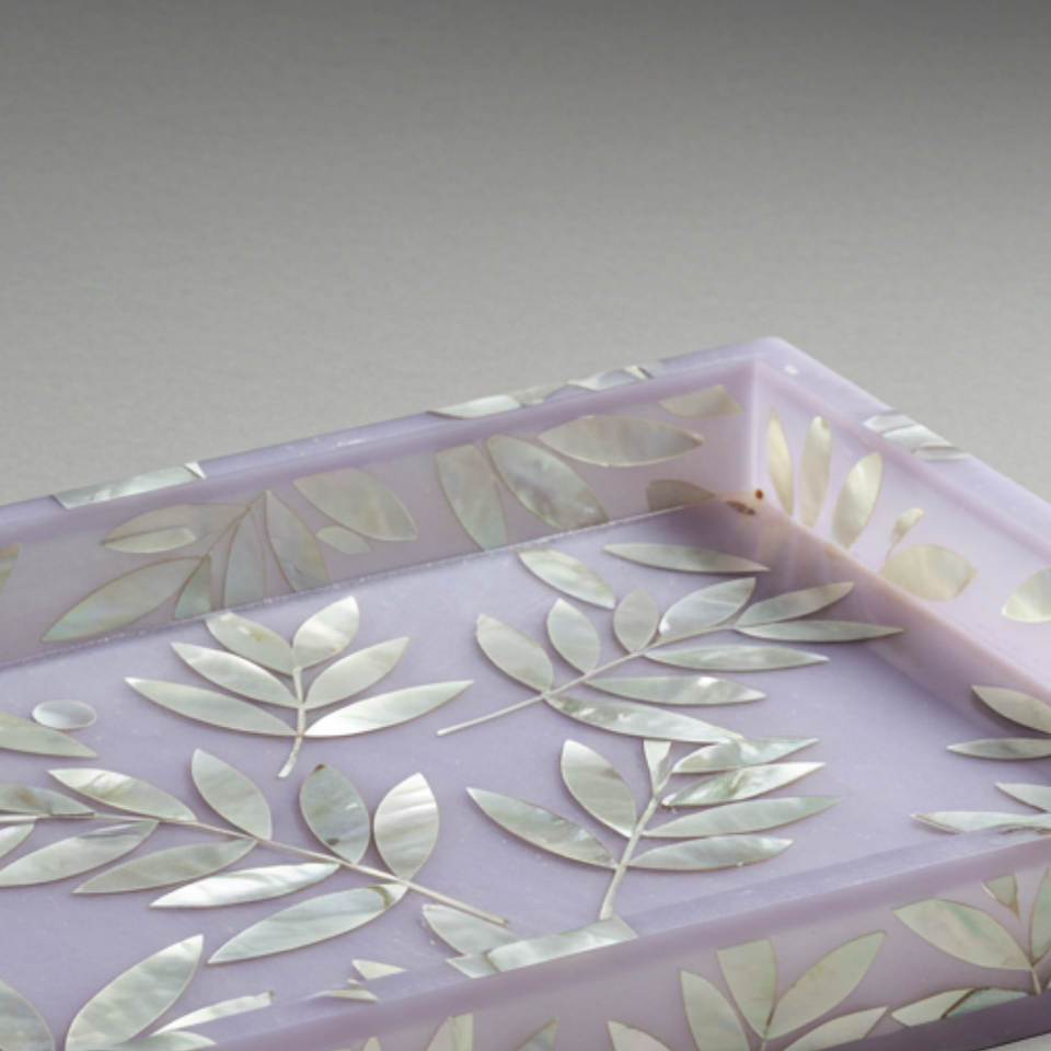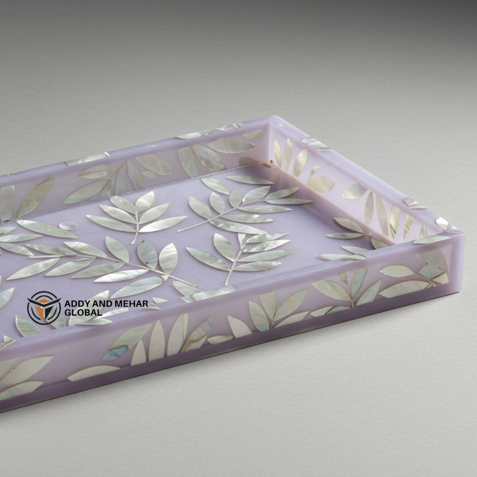 ถาดไม้ม็อบฝังหอยมุกทรงสี่เหลี่ยมสุดหรูแบบฝังเปลือกนิ่ม/สีม่วงลายใบไม้พฤกษศาสตร์ผู้จัดจำหน่ายในอินเดีย
