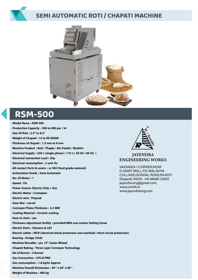 เครื่องทำแป้งจาปาตีกึ่งอัตโนมัติ RSM 500 จากซัพพลายเออร์อินเดีย สำหรับครัวขนาดใหญ่ ราคาโรงงาน