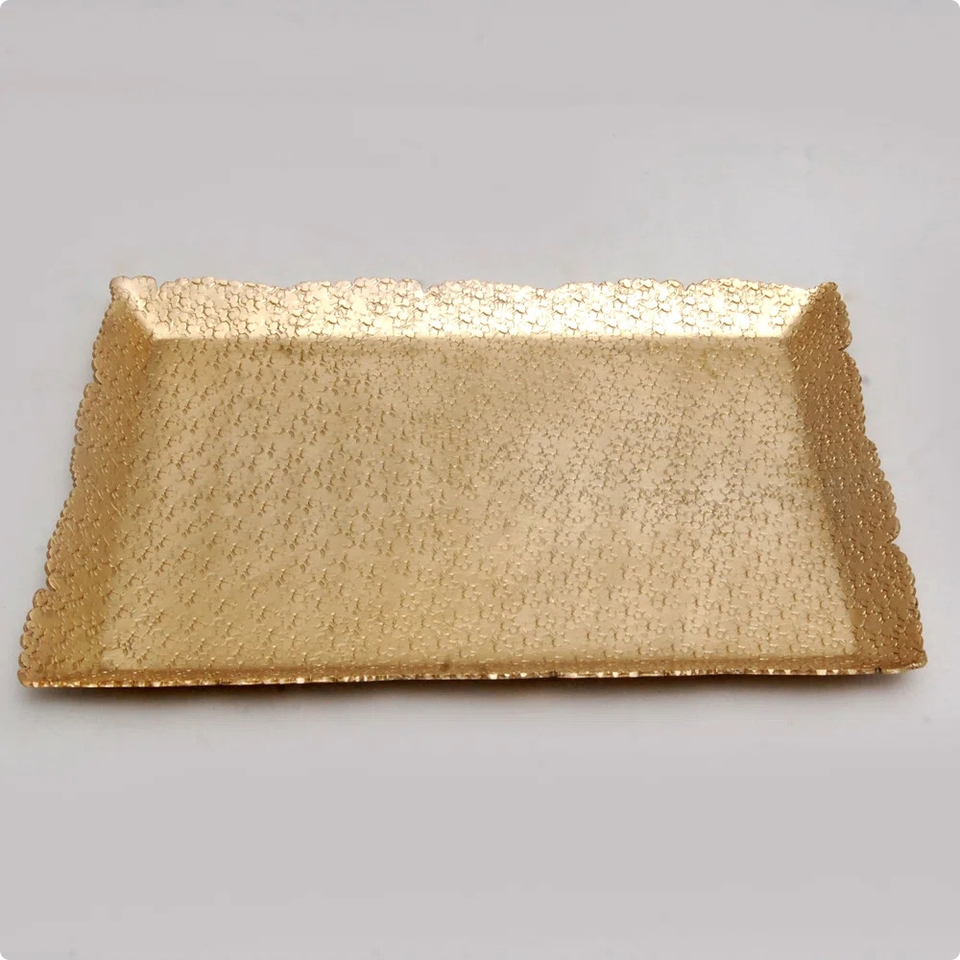 ถาดโลหะรูปสี่เหลี่ยมผืนผ้าจากซัพพลายเออร์อินเดีย สำหรับขนมปัง ของหวาน ขนม ถาดโลหะสีทอง ถาดเสิร์ฟกาแฟ ชา อาหาร ผลไม้