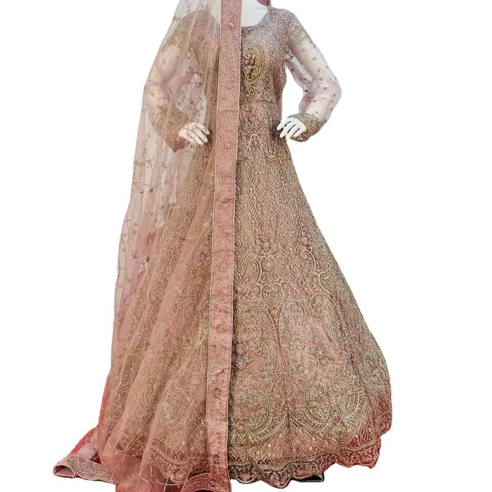 ชุดแต่งงานสไตล์ปากีสถานจากซัพพลายเออร์อินเดีย ชุดเดรสยาวสำหรับงานปาร์ตี้พร้อมผ้าคลุมไหล่ ผ้าเน็ต สำหรับเพื่อนเจ้าสาวและแขกในงานแต่งงาน