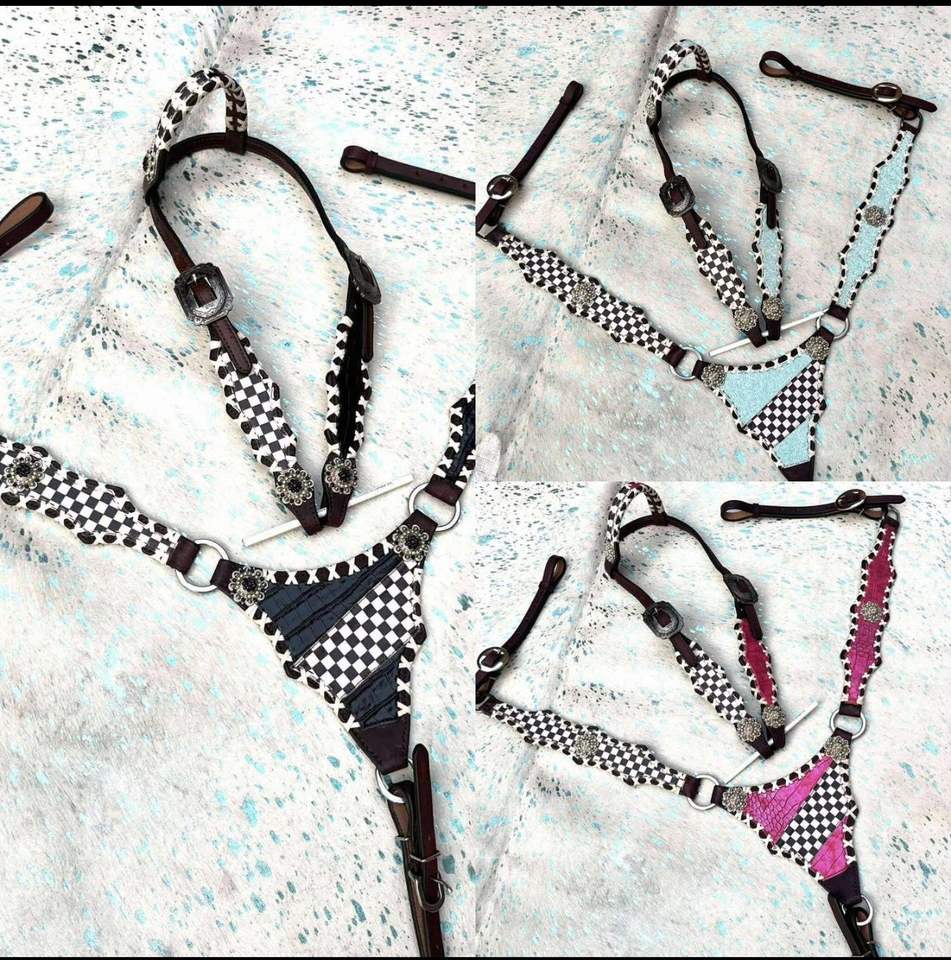 ชุดหูฟังหนังแบบตะวันตกคอเสื้อพร้อมบังเหียนจากอินเดีย