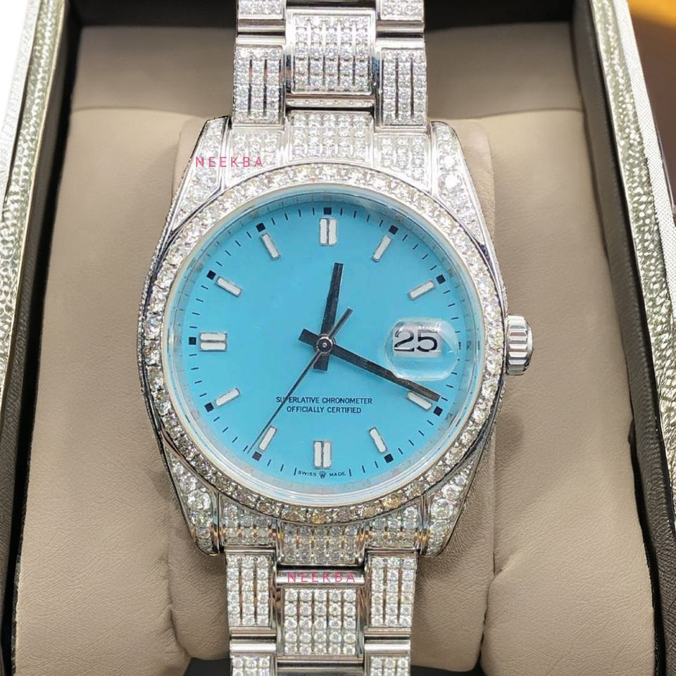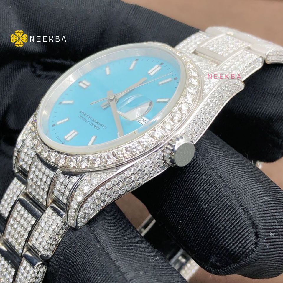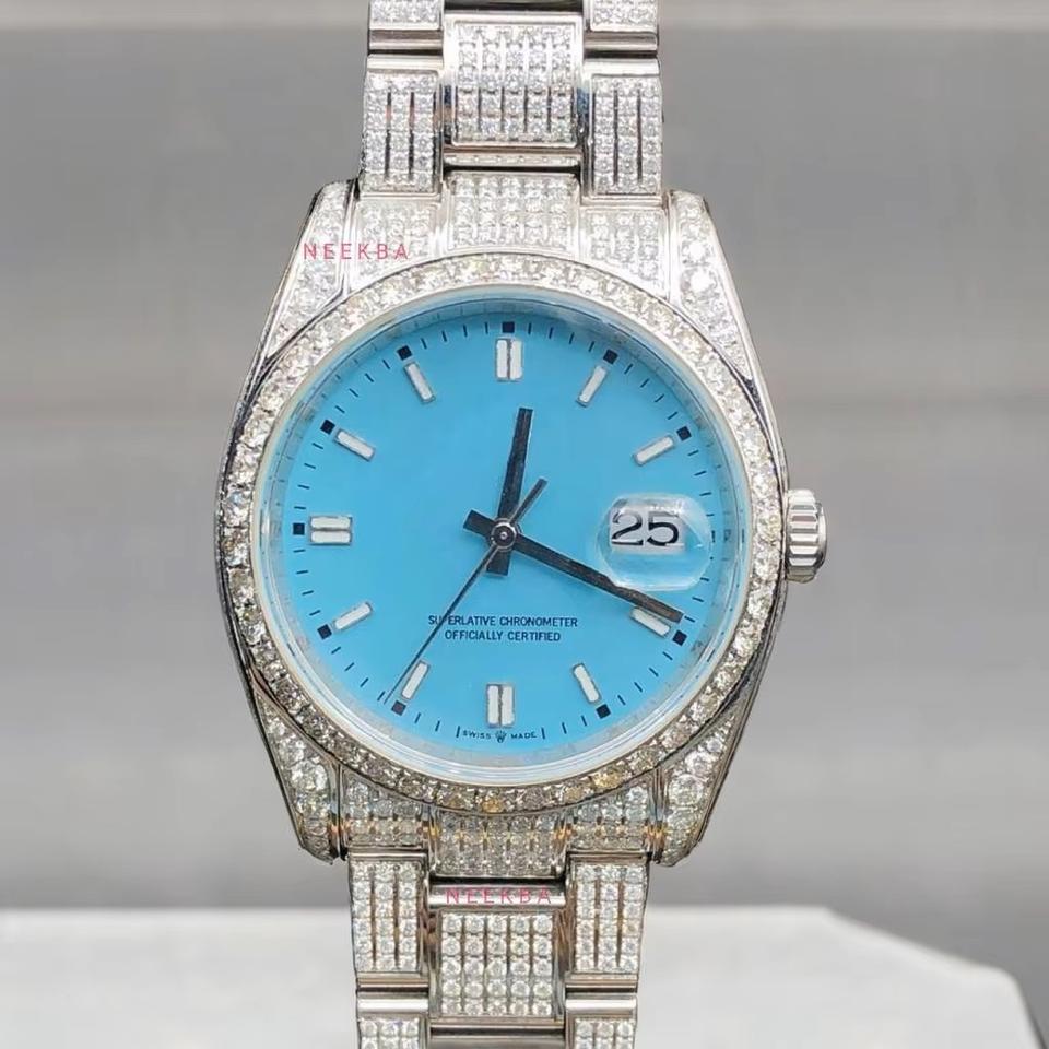 นาฬิกาเพชรมอยส์ซอไนต์อัตโนมัติของผู้ผลิตอินเดียที่ขายดีที่สุดรุ่นสีฟ้านาฬิกาอะนาล็อกสำหรับผู้ชาย