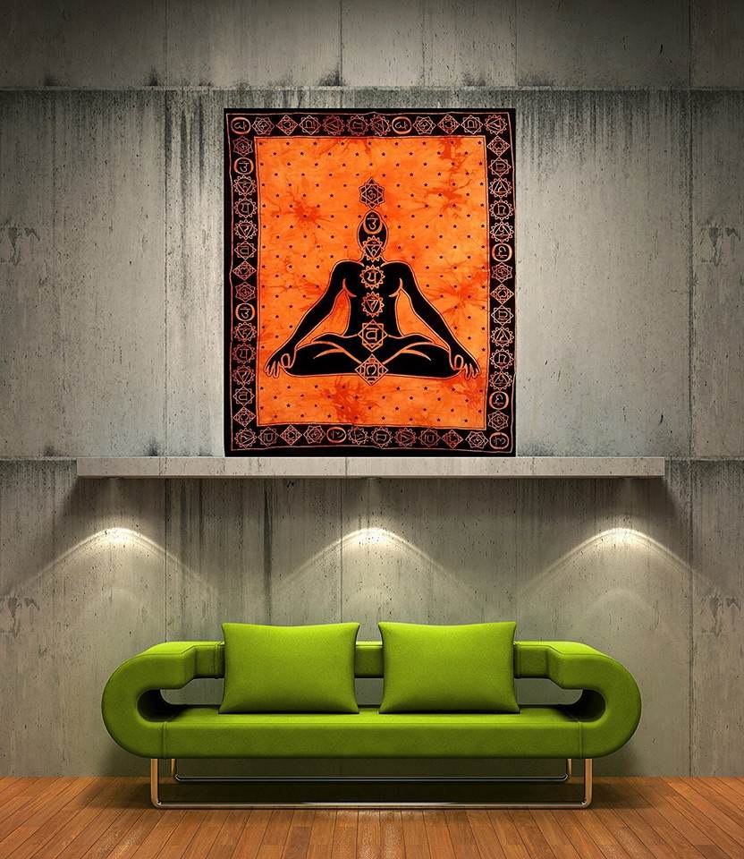พรมทอแขวนผนังลายโบฮีเมียนหลากสีสำหรับแขวนลายช้างมันดาลามัดย้อม7ลาย
