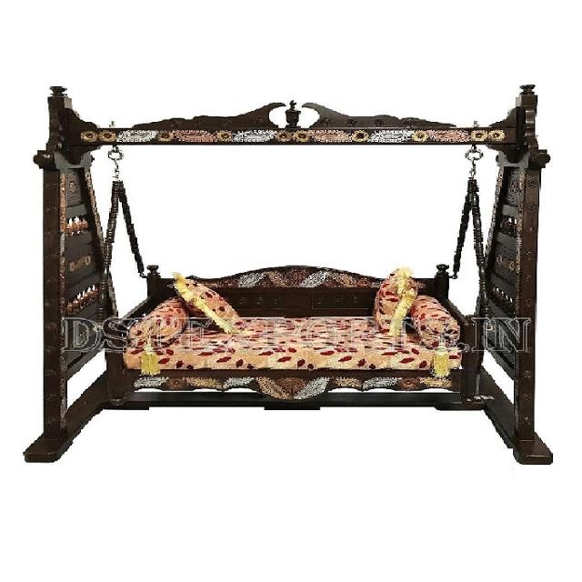 ชิงช้าไม้สักอินเดียสีน้ำตาลแกะสลักด้วยมือ สไตล์โมเดิร์นหรูหรา สำหรับใช้ภายในบ้าน ปรับขนาดได้