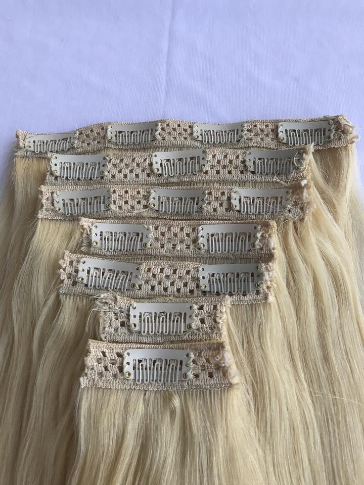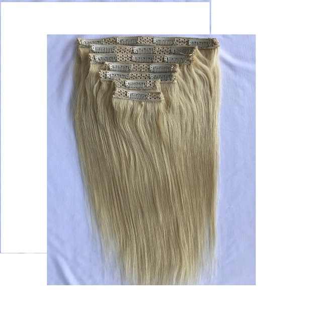 คลิปต่อผมสีบลอนด์ตรง18นิ้วสำหรับคนร่างแบบไม่ผ่านกระบวนการ