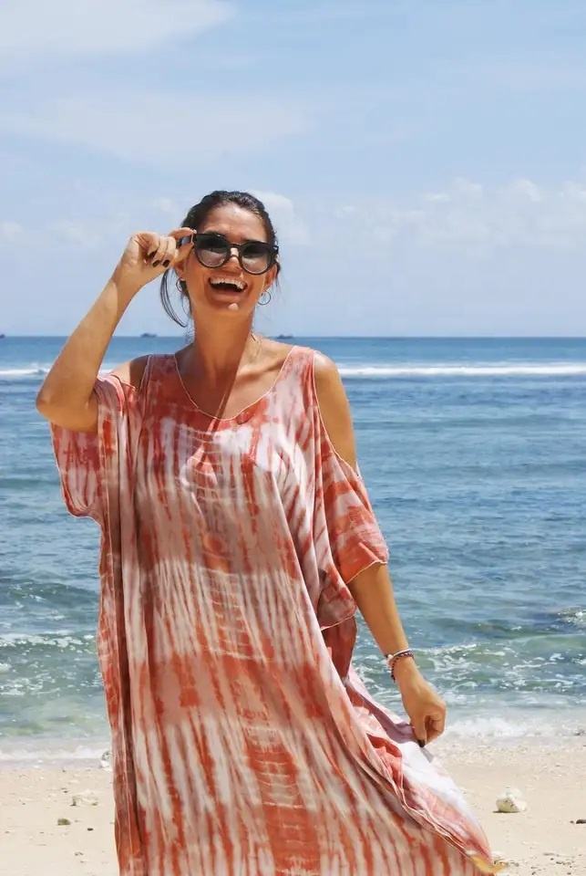 อินเดียผูกและย้อมไหล่เย็นครึ่งแขนยาว Kaftan ชุดผู้หญิงของขวัญฤดูร้อนโปรดปราน