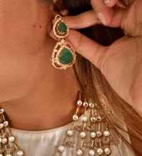 สร้อยคอ5ชั้นของผู้ผลิตอินเดียทองเหลืองชุบทองพร้อมโฆษณา CZ มรกตคู่และทับทิมสไตล์ชาติพันธุ์