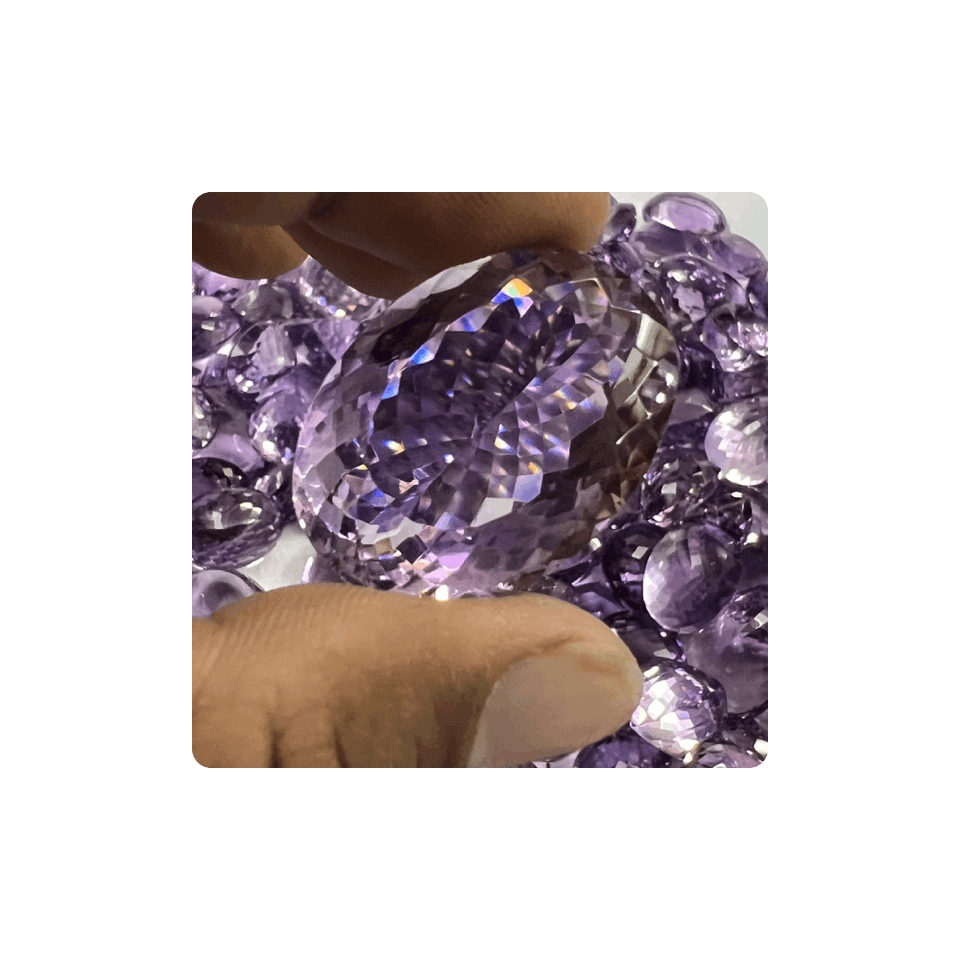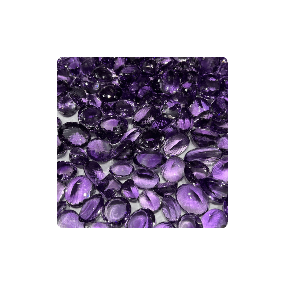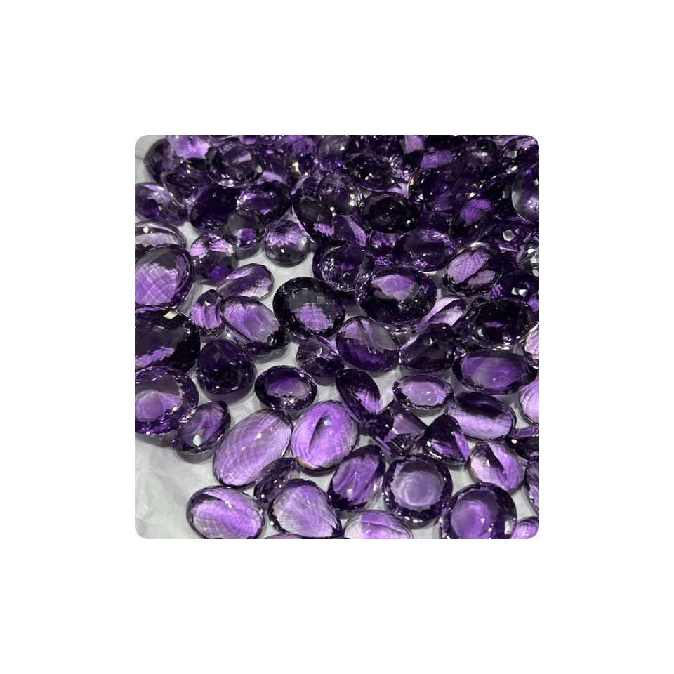 ผู้จัดจำหน่ายชั้นนำของอินเดีย คุณภาพดี อเมทิสต์ควอตซ์สีม่วงธรรมชาติ พลอยหลวม หินเจียระไน ขนาด 15-25 มม. ขายส่งจำนวนมาก