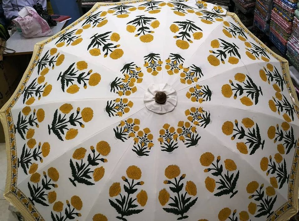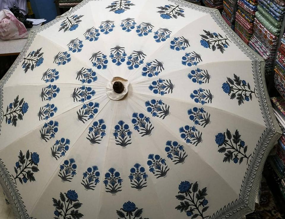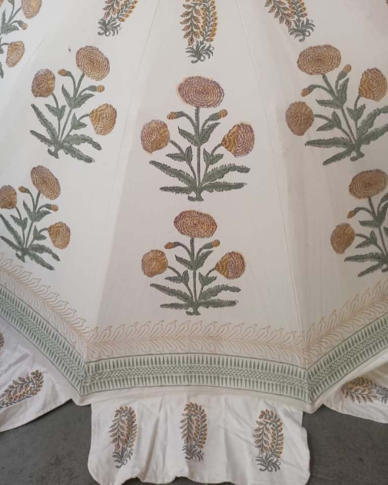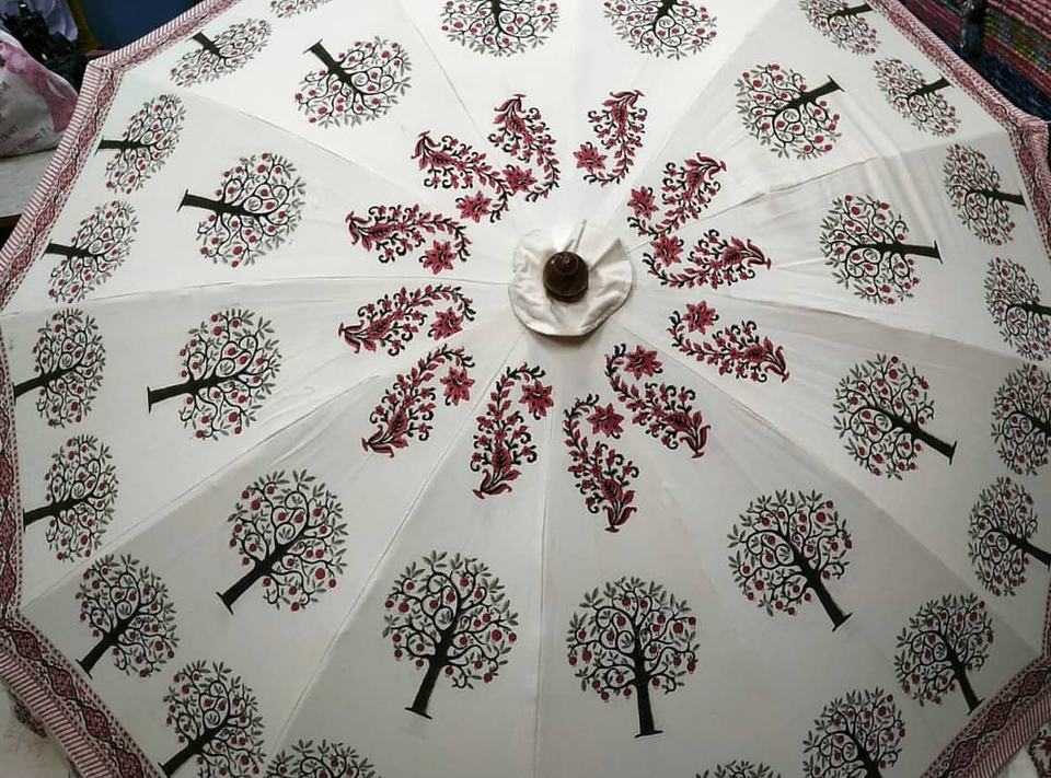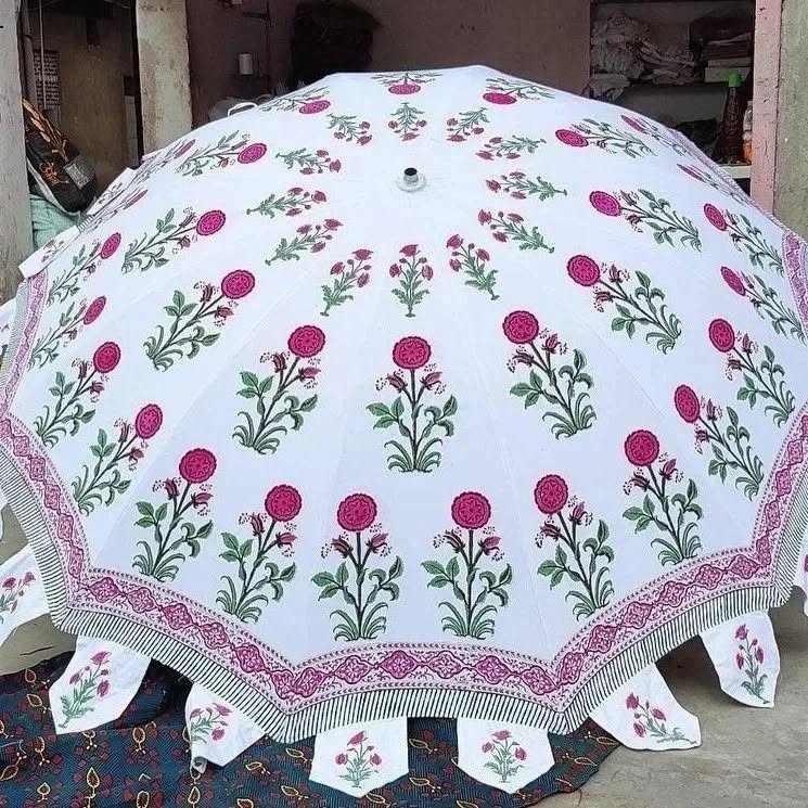 ร่มตกแต่งแบบดั้งเดิมของอินเดีย ทำจากผ้าฝ้าย 100% ลายราชสถาน ร่มกันแดดแบบแฮนด์บล็อก สำหรับรถยนต์/ชายหาด งานแต่งงาน ตกแต่งพร้อมโลโก้