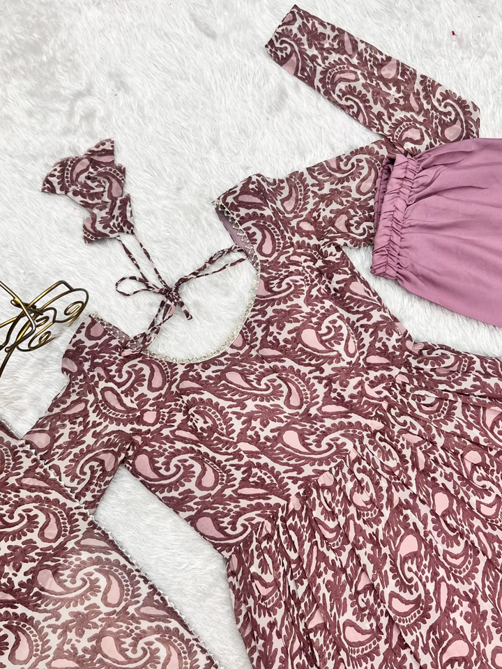 ชุดคุรตีอานาร์กาลีแบบดั้งเดิมของอินเดีย ผ้าฟ็อกซ์จอร์เจตต์ งานปักแฟนซีประณีต ประดับด้วยลูกปัดและงานปักดิ้นทอง รุ่น KB-277