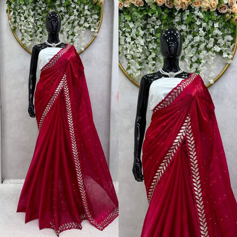 ด้ายปัก C-PALLU ที่สวยงามและลำดับ3มม. พร้อมงานหินด้วยมือส่าหรีตัดขอบงาน