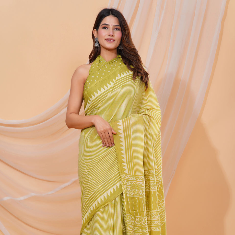 เสื้อส่าหรีผ้าฝ้ายมัลมัลมอุตสานลายอัจรัคแบบอินเดียดั้งเดิม น้ำหนักเบา แห้งเร็ว ยาวคลุมเท้า ดีไซน์ใหม่สไตล์บอลลีวูดสำหรับงานปาร์ตี้
