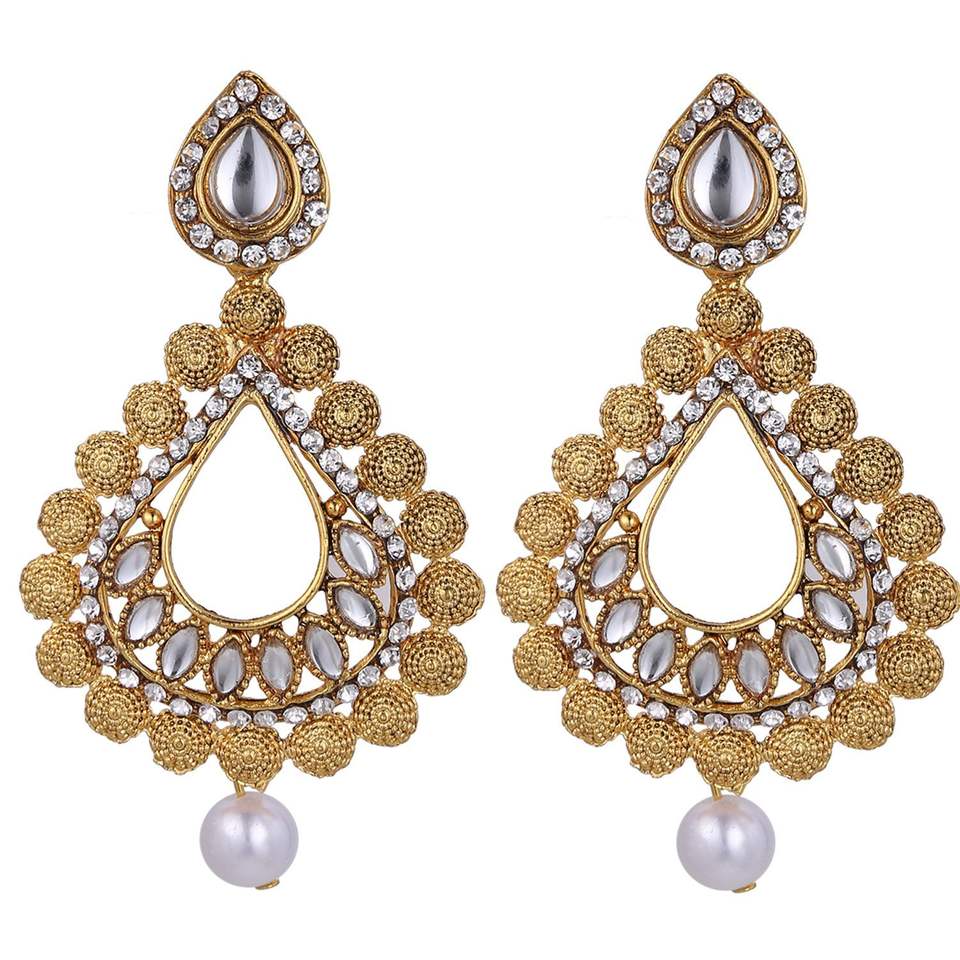 ต่างหูชุบทอง14K ประดับเพชรสไตล์อินเดียสำหรับผู้หญิงและเด็กผู้หญิง