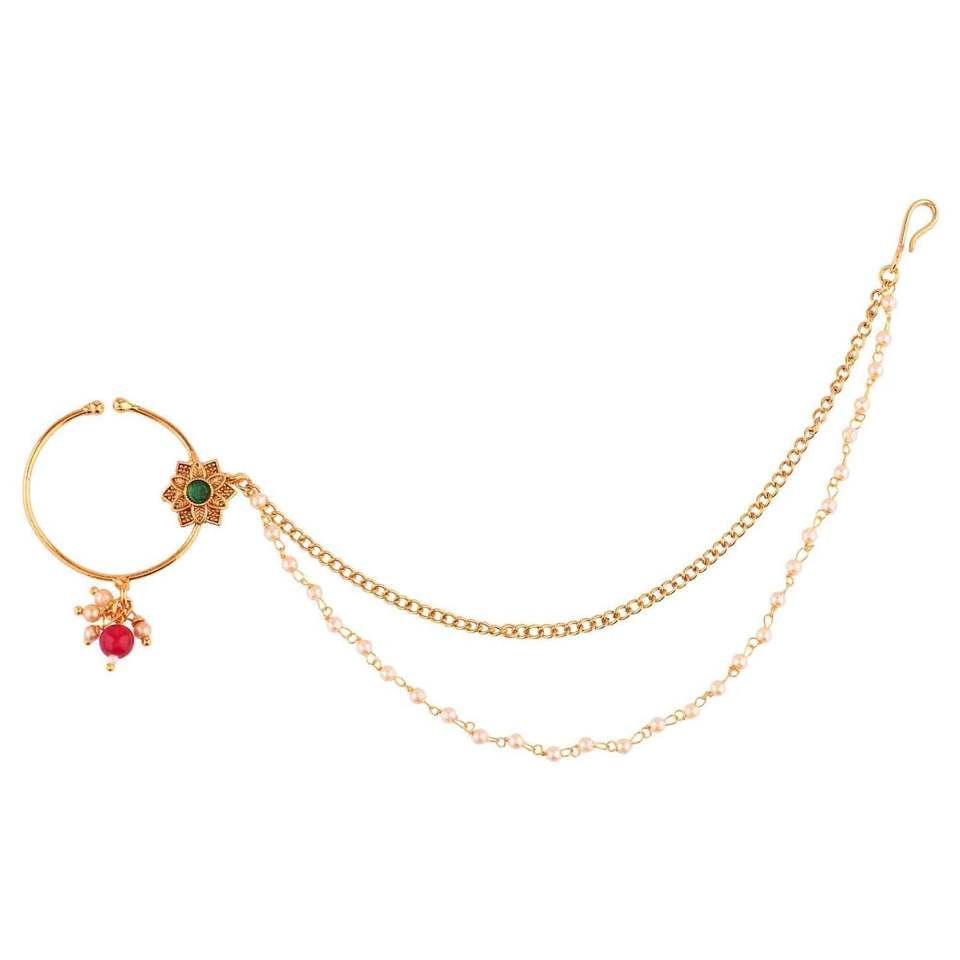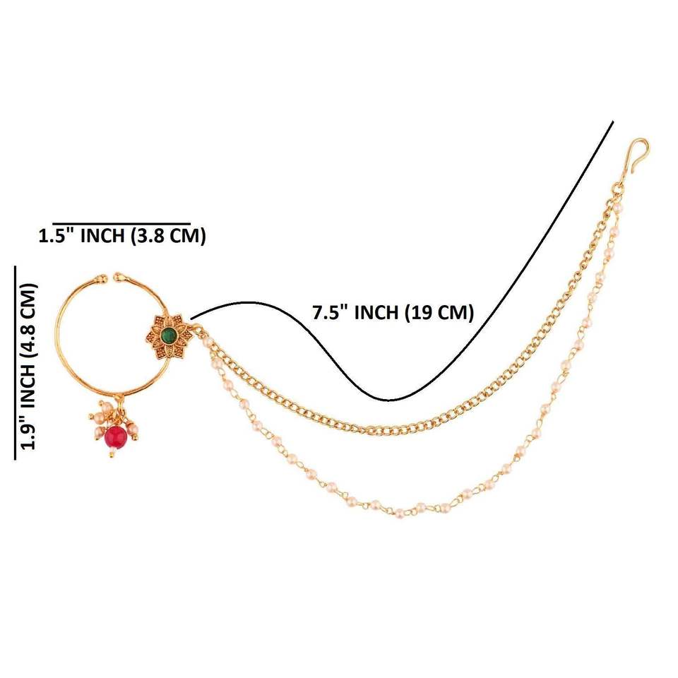 ออกแบบ:สลักจมูกแบบโบราณอันละเอียดอ่อนแบบดั้งเดิม/สลักเกลียว/แหวน/nath พร้อมโซ่