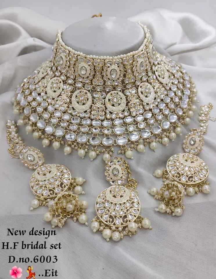 ชุดสร้อยคอและต่างหูทองชุบคุณภาพสูงแบบอินเดียประดับด้วยคุนดันและมุก สำหรับผู้หญิง เหมาะสำหรับงานแต่งงานและงานปาร์ตี้